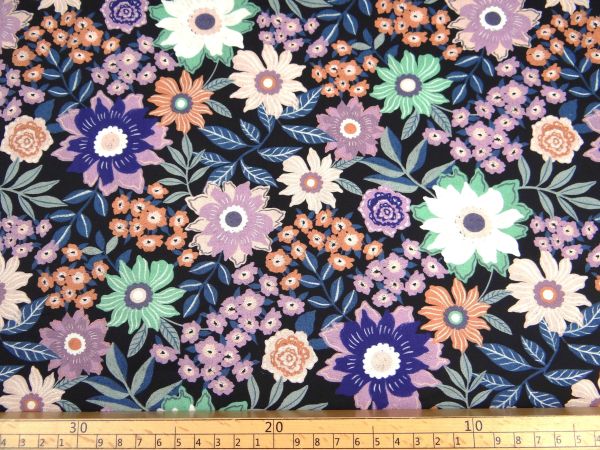 Webware aus Baumwolle mit Blumenmix in vielen Farben. Grundfarbe ist schwarz