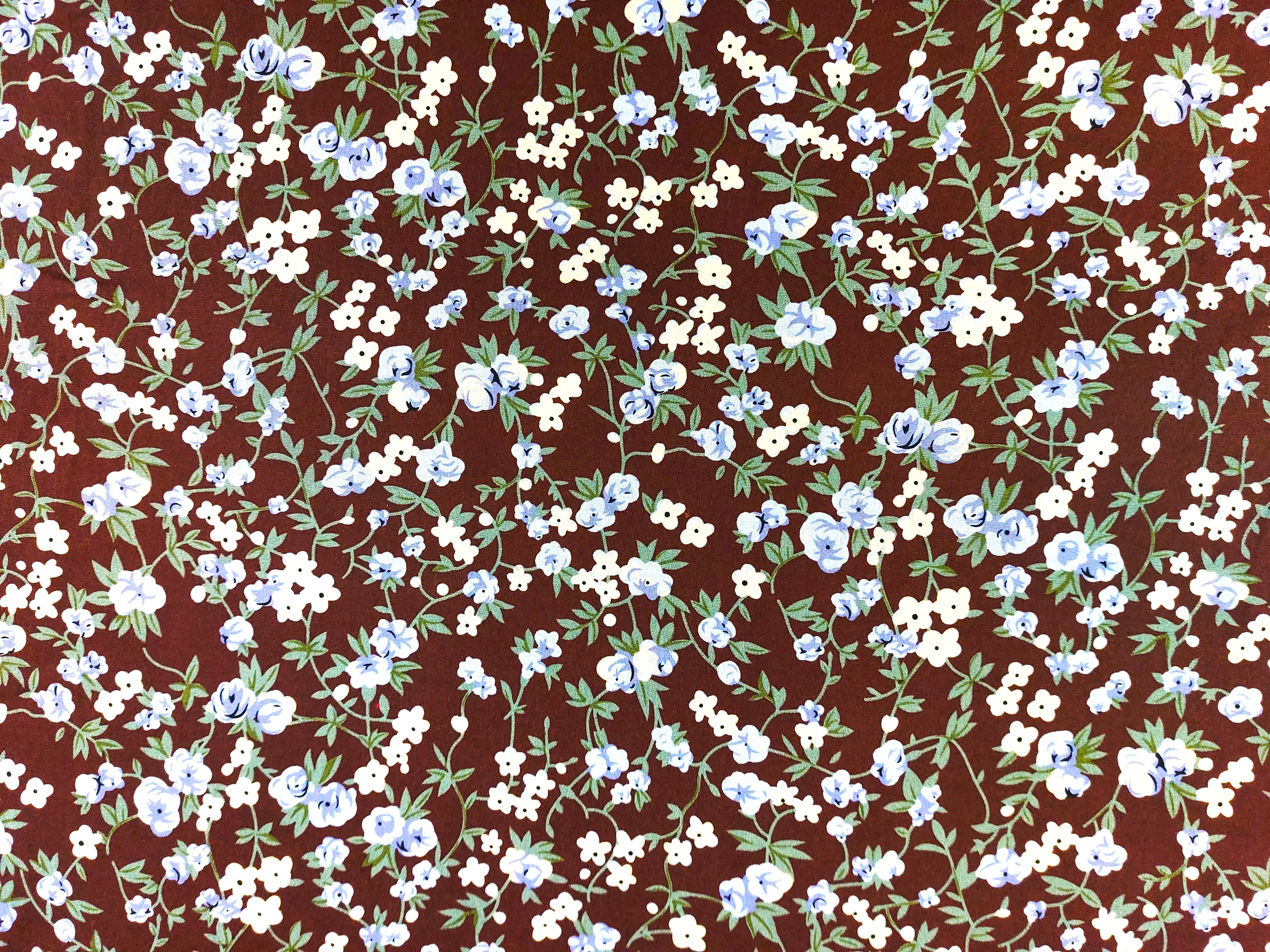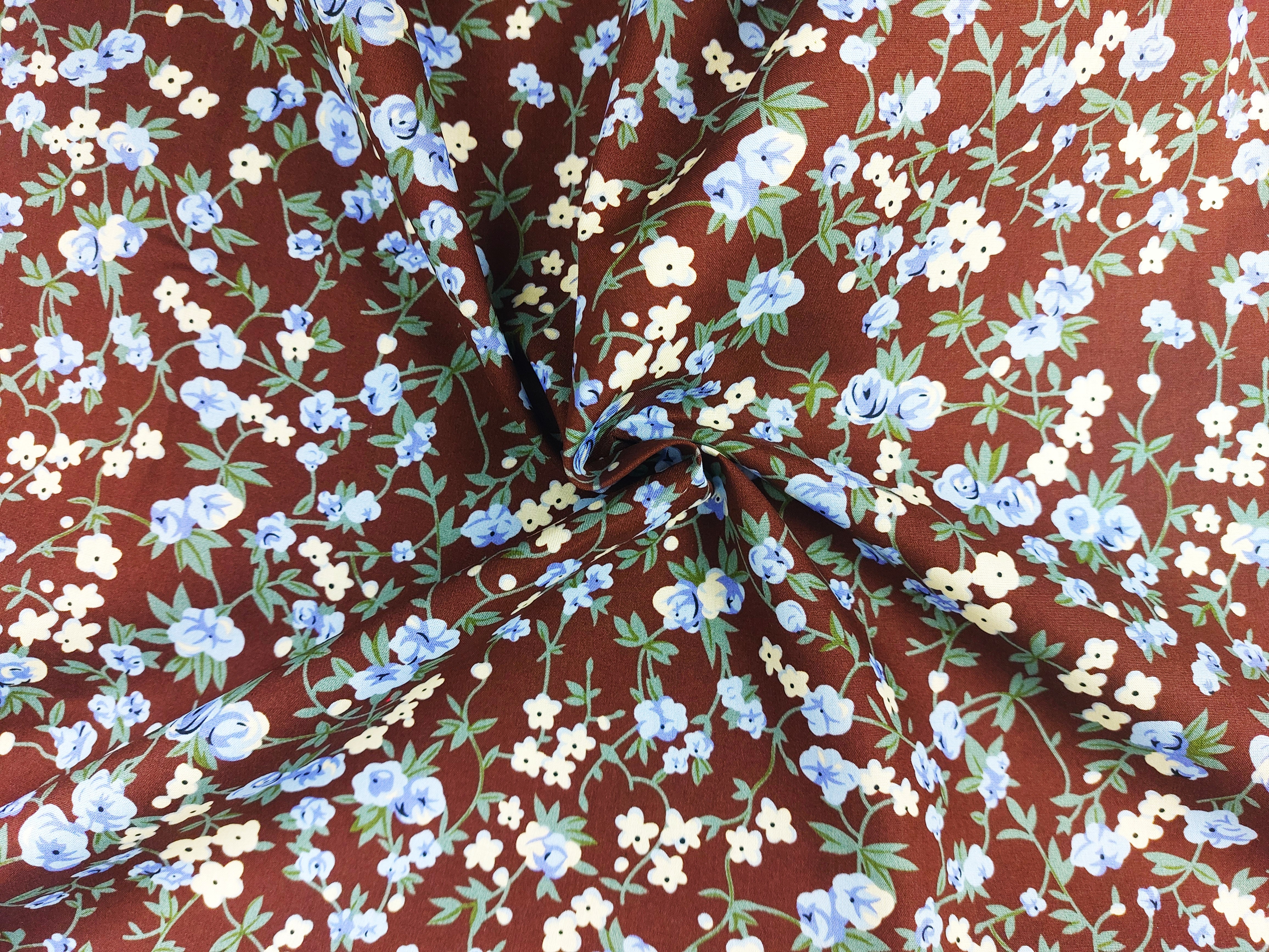 Webware aus Baumwolle , Blumenranken, Grundfarbe braun