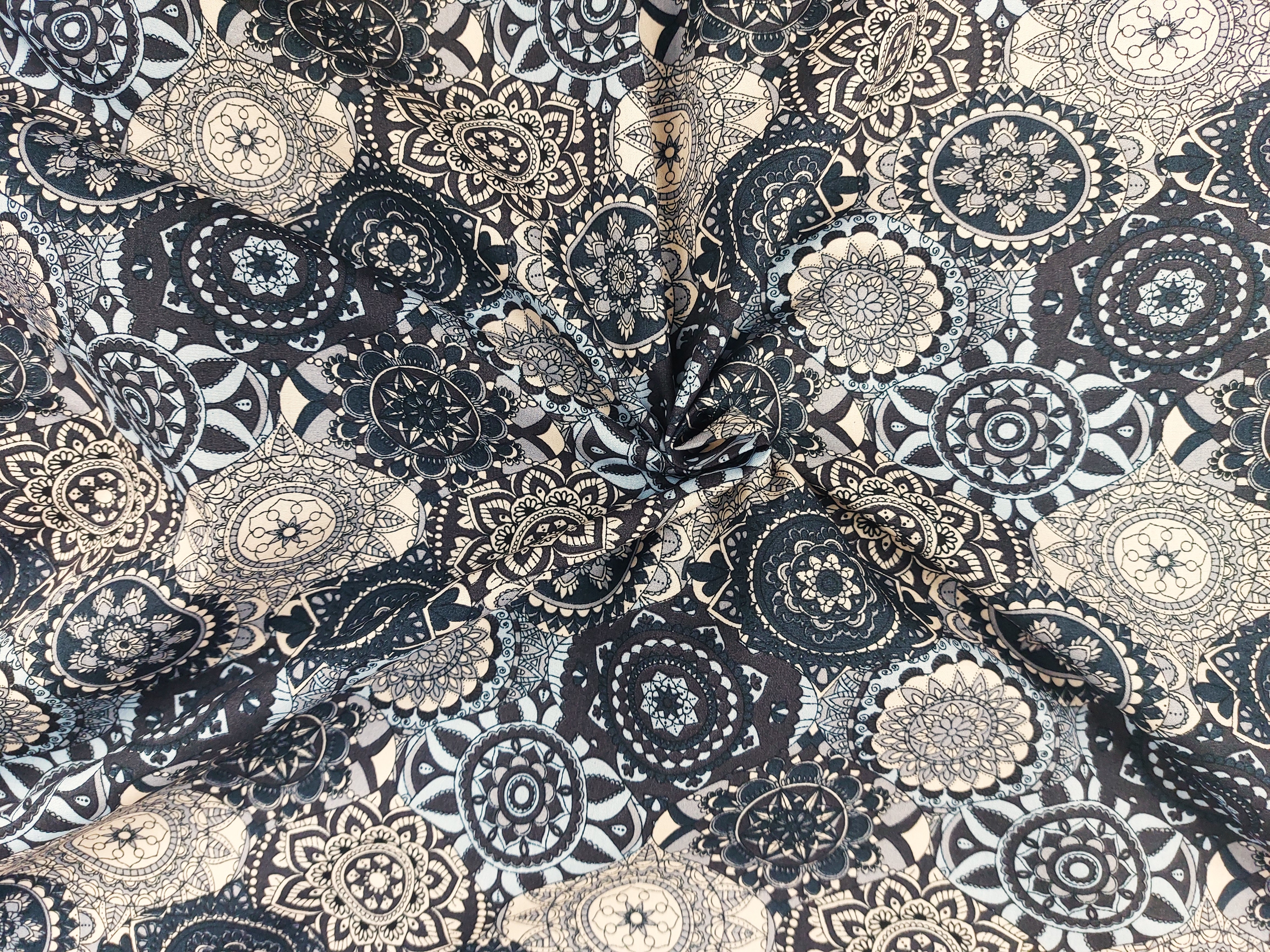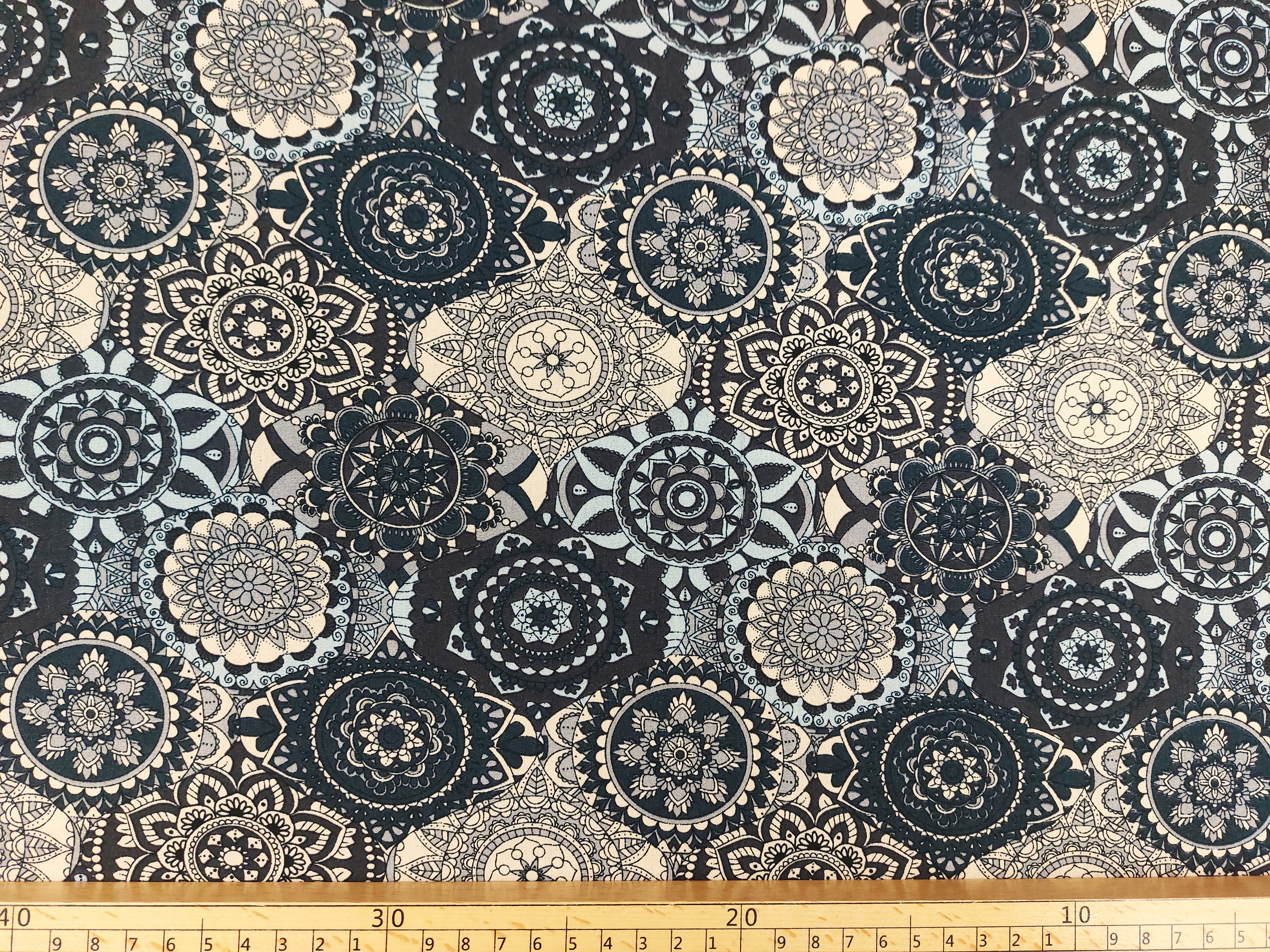 Webware aus Baumwolle , Mandalas in gedeckten Blautönen