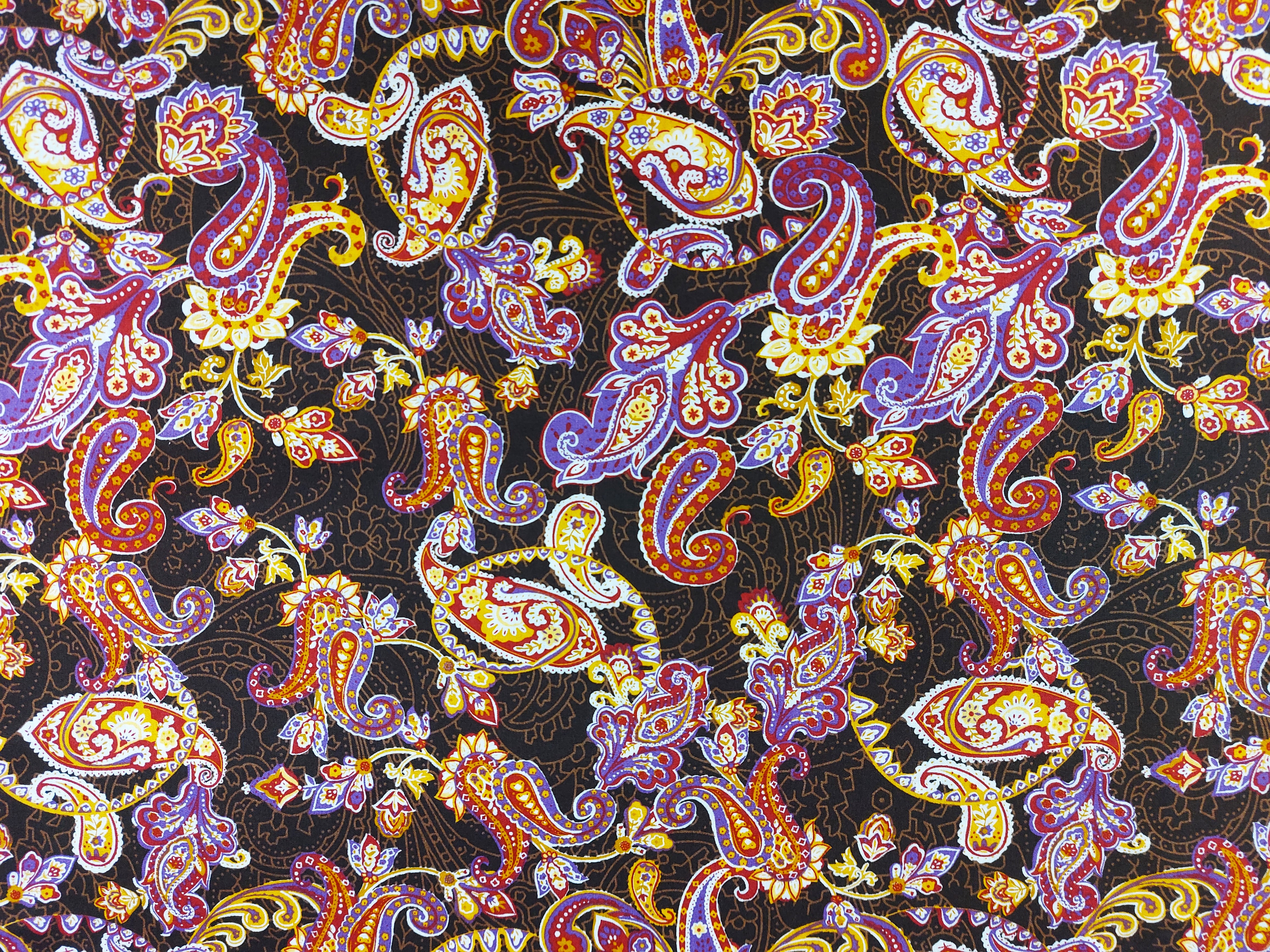 Webware aus Baumwolle , Paisley Muster in rot, Grundfarbe braun