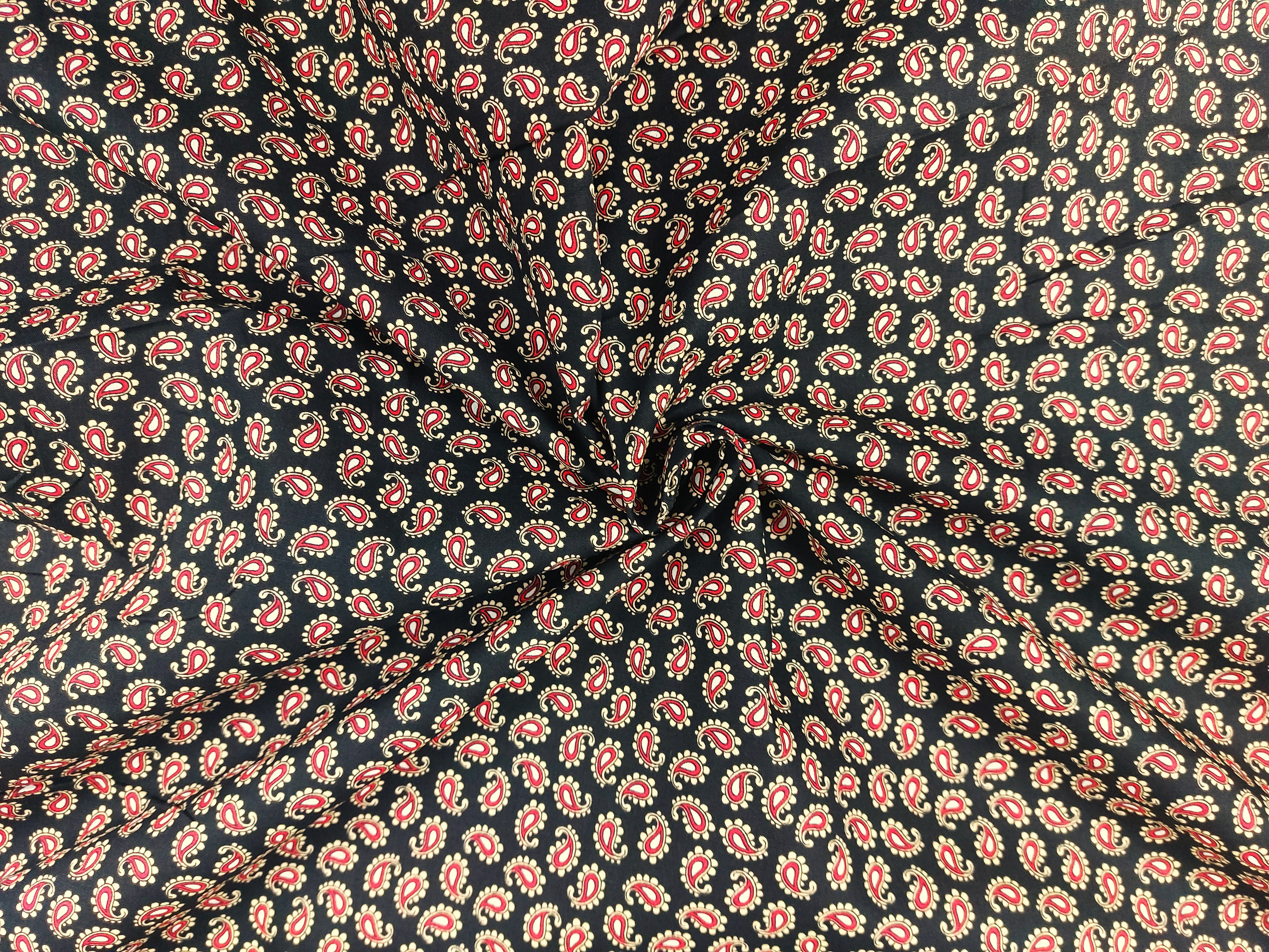 Webware aus Baumwolle , kleines Paisley Muster, Grundfarbe schwarz