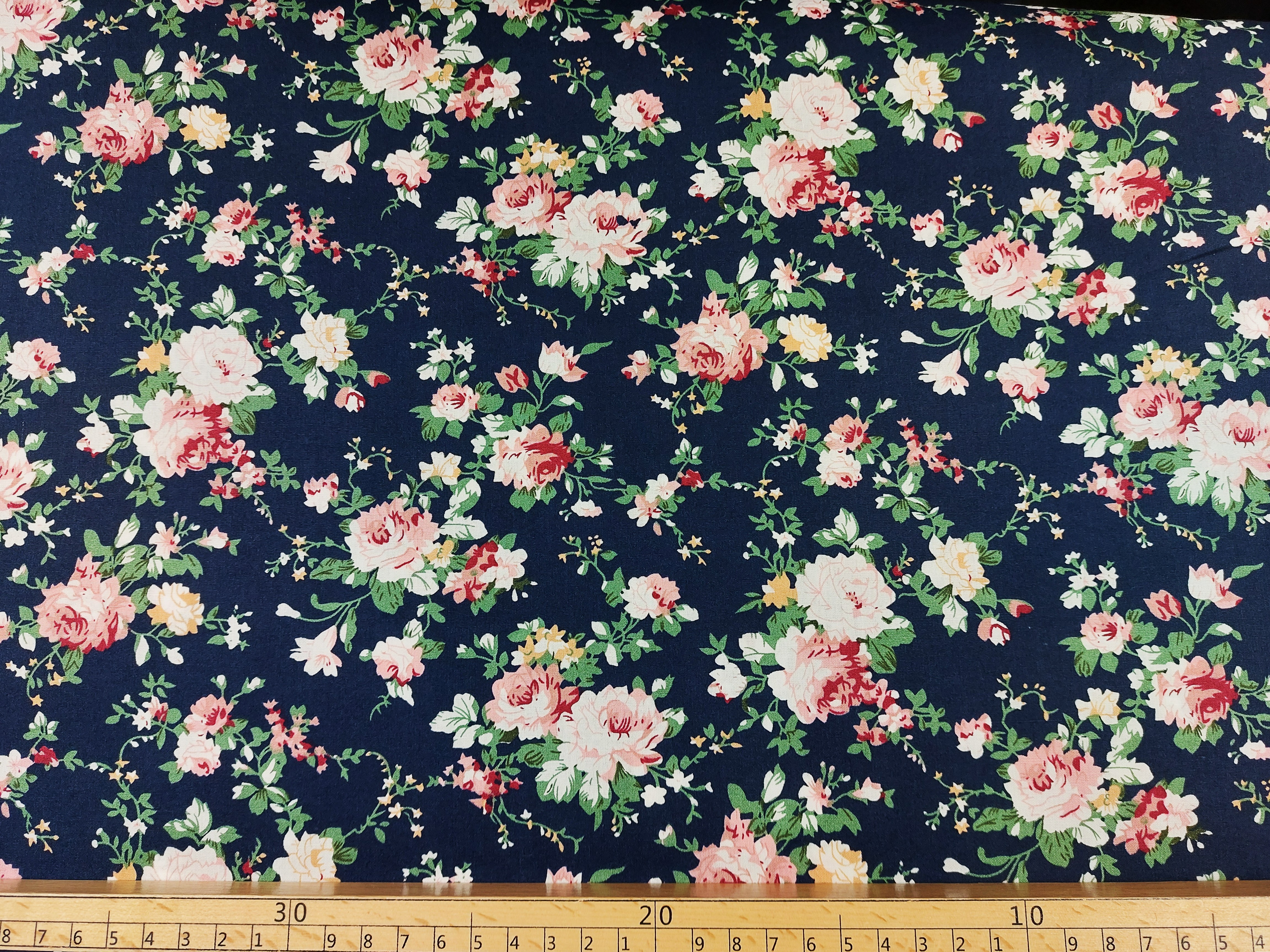 100 % Baumwolle , Rosenmuster, dunkelblau