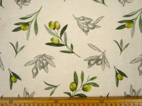 Produktinformationen "Abschnitt beschichtete Baumwolle, gemustert Oliven"