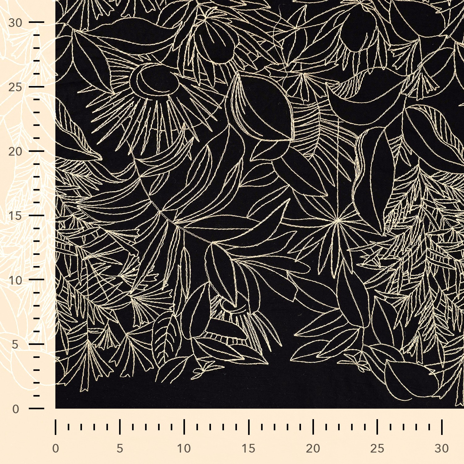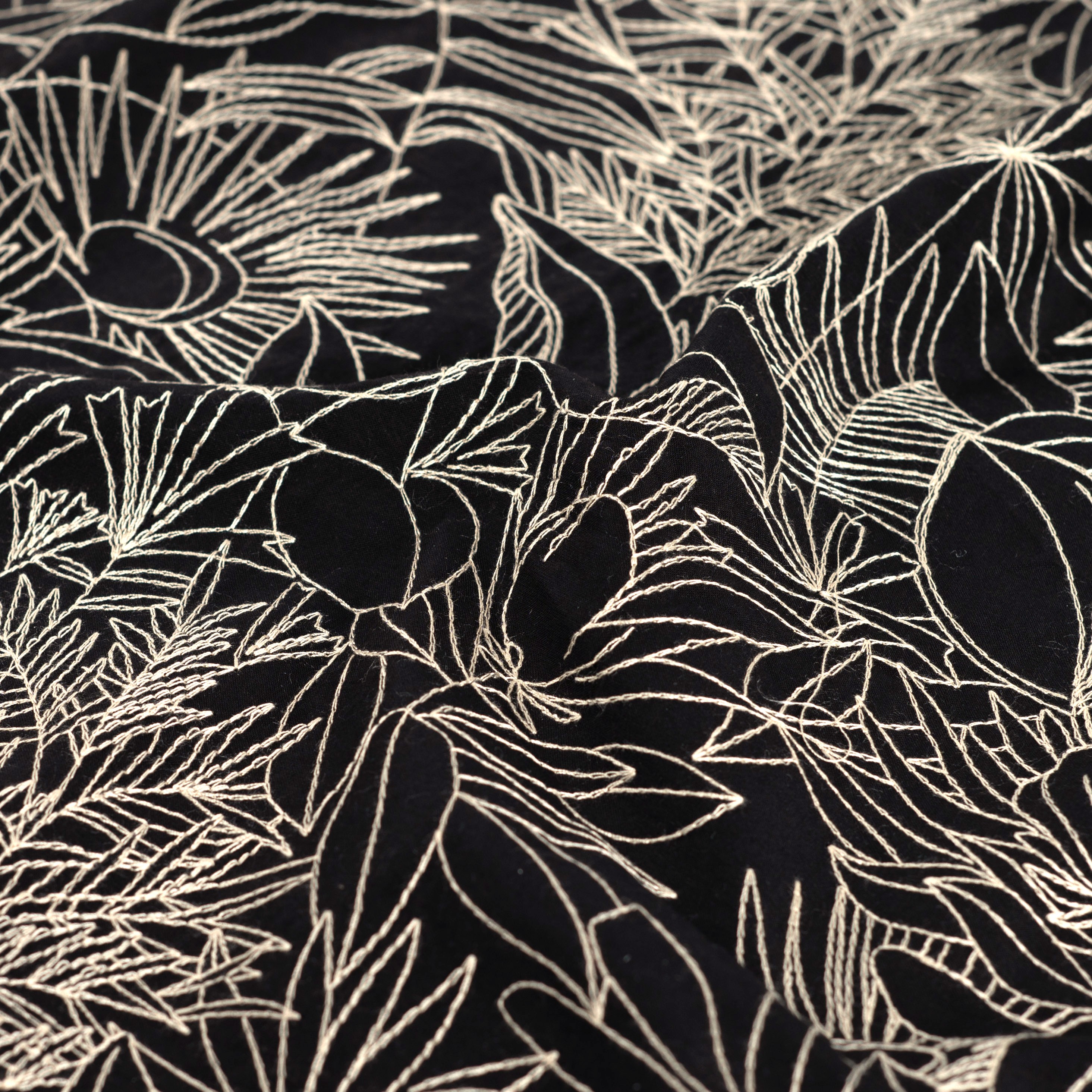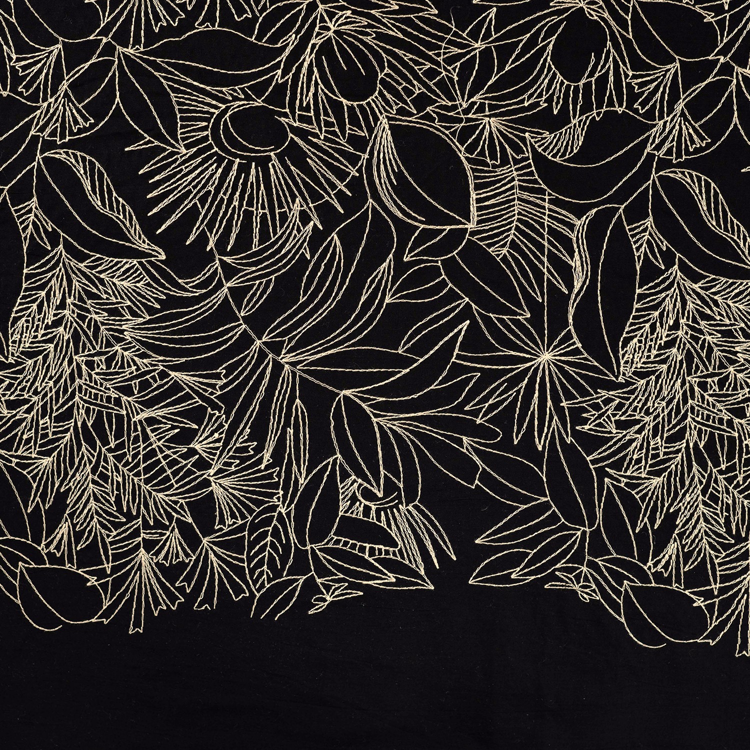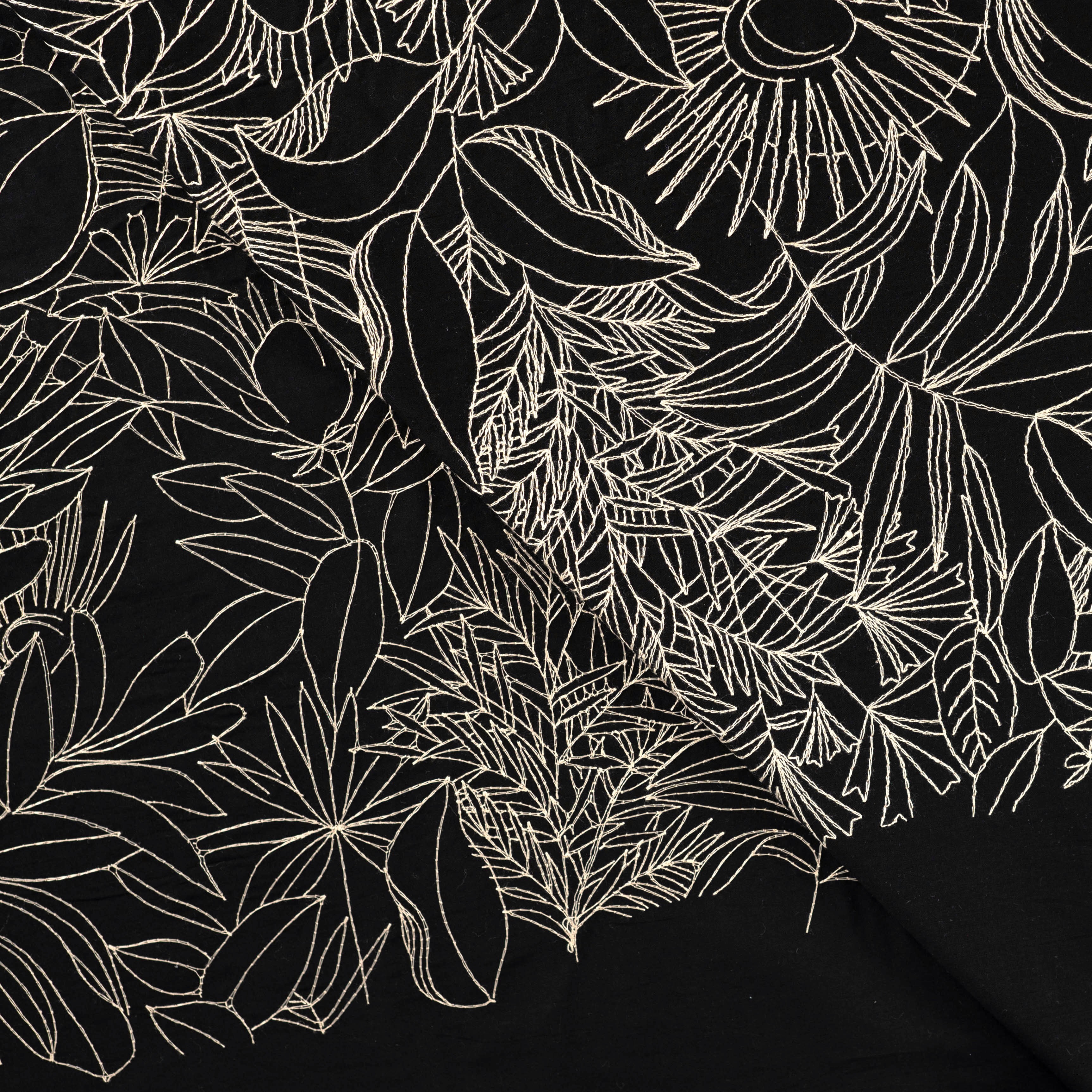 Baumwollwebstoff, schwarz, florale Stickerei in ecru