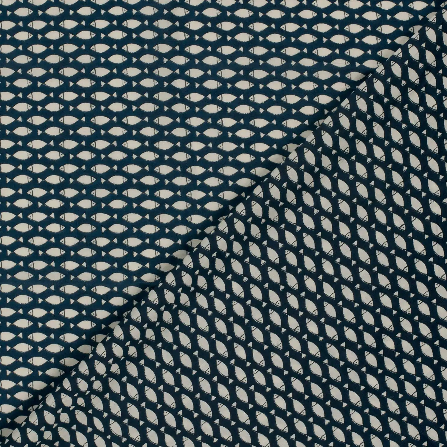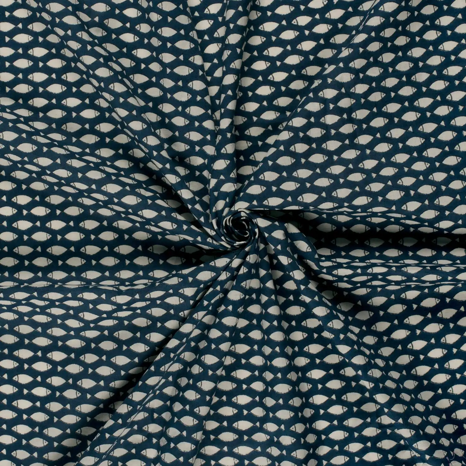 Bluse, Baumwolle- Voile, Fische, blau /beige