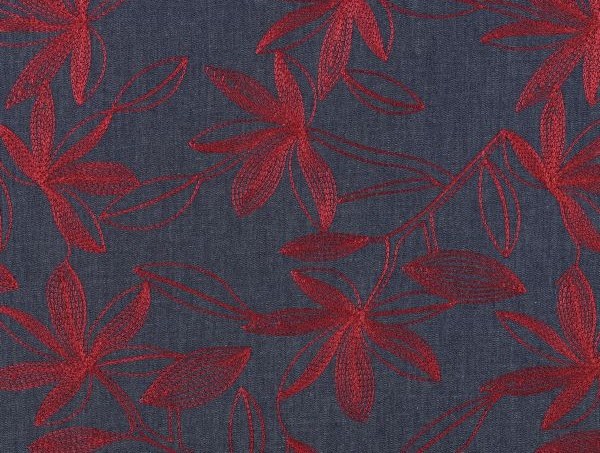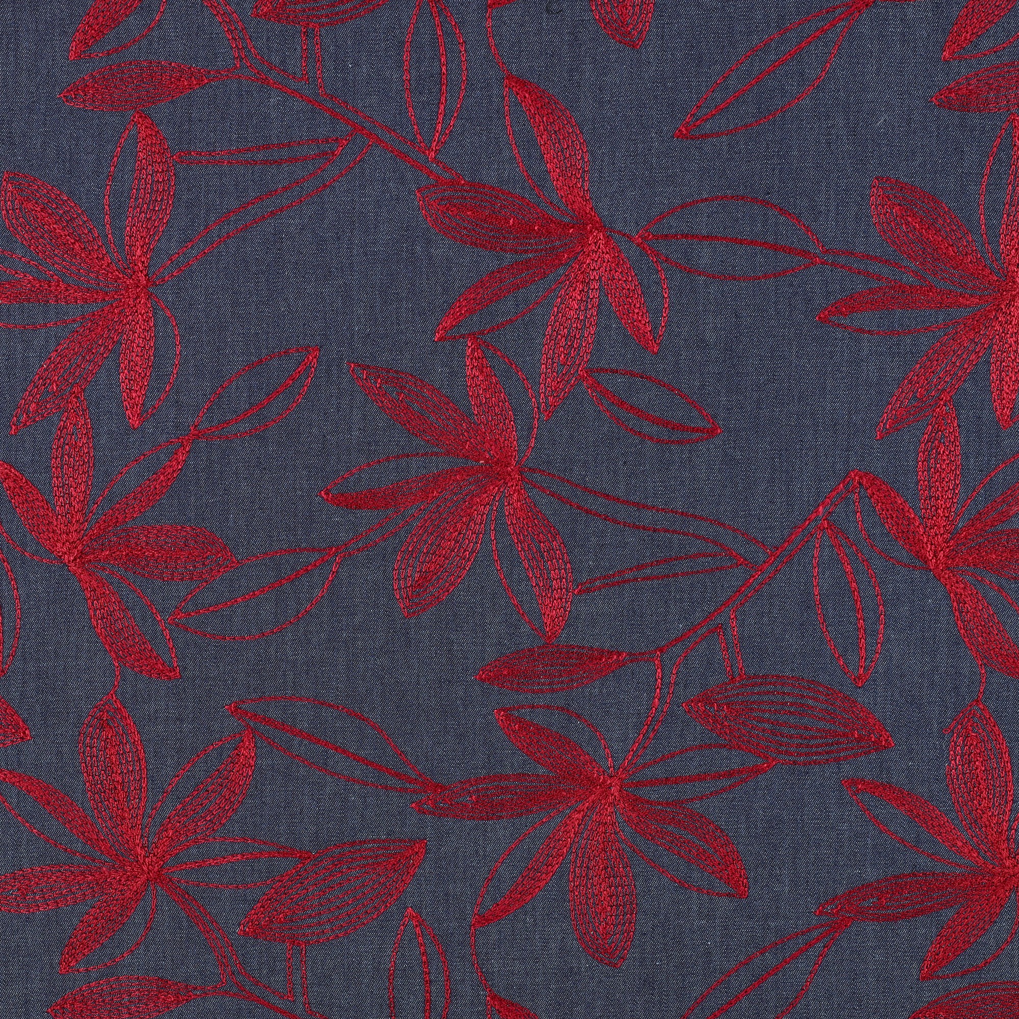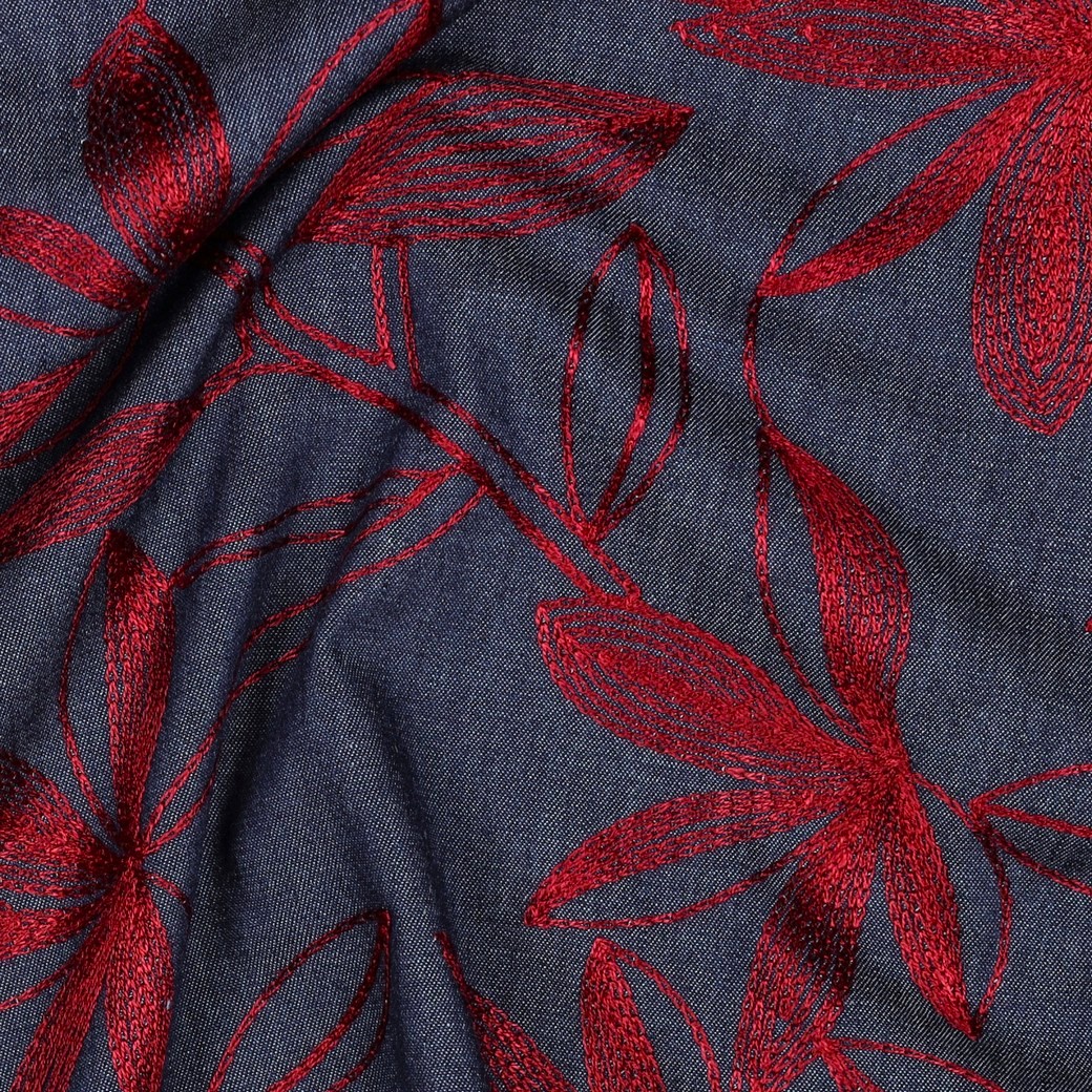 Bluse, Jeansoptik mit Stickerei, bordeaux