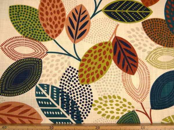 Produktinformationen "Dekostoff, Blätter, ecru / bunt"