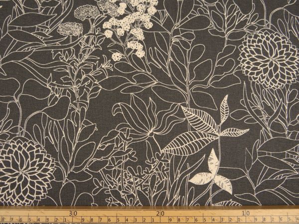bedruckter Dekostoff, Webware, Pflanzen & Blätter wie gezeichnet