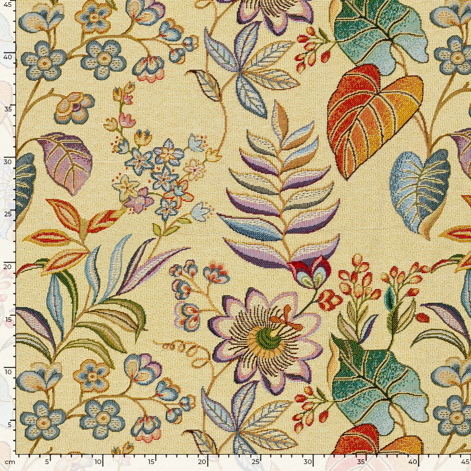Produktinformationen "Dekostoff, Gobelin, exotische Pflanzen, ecru"