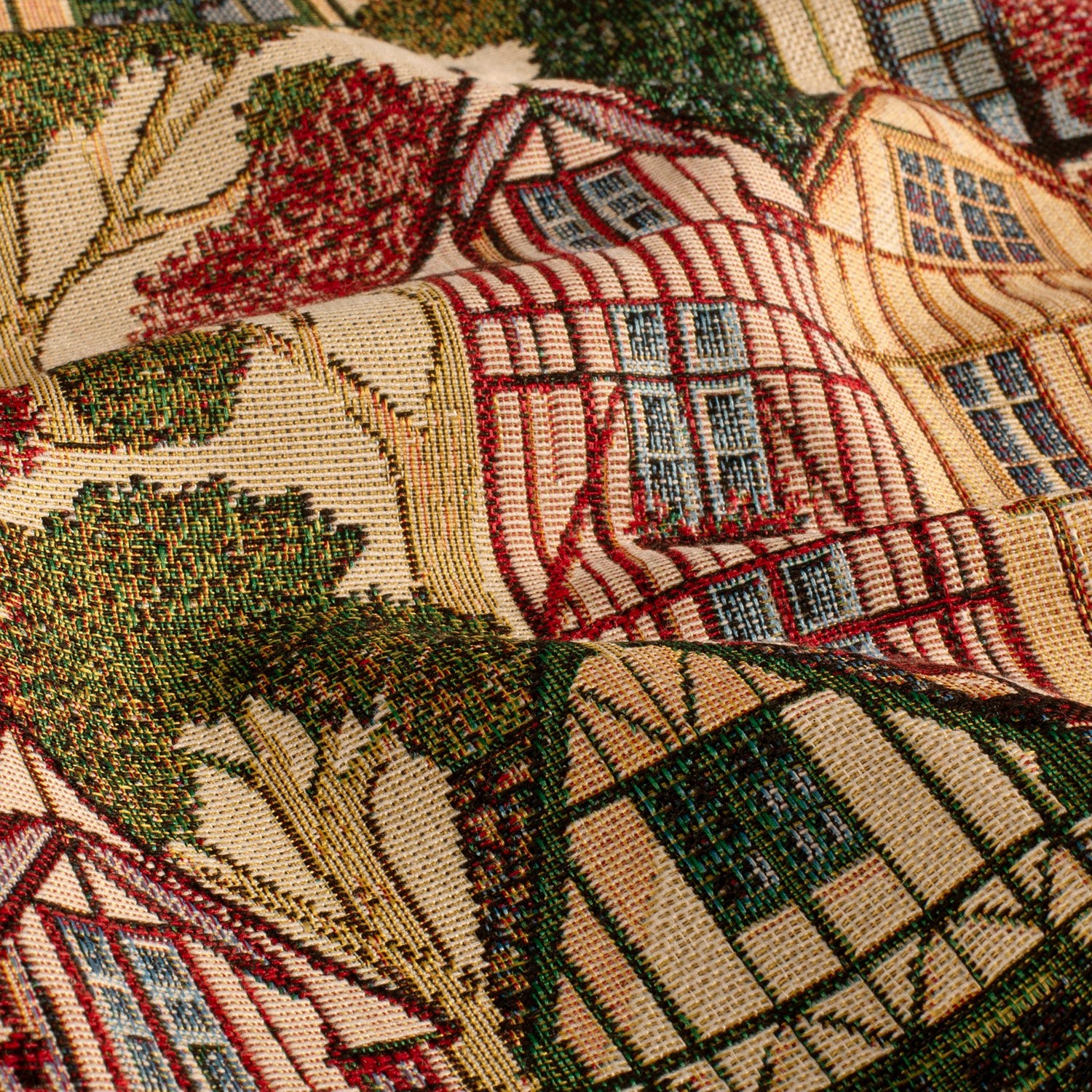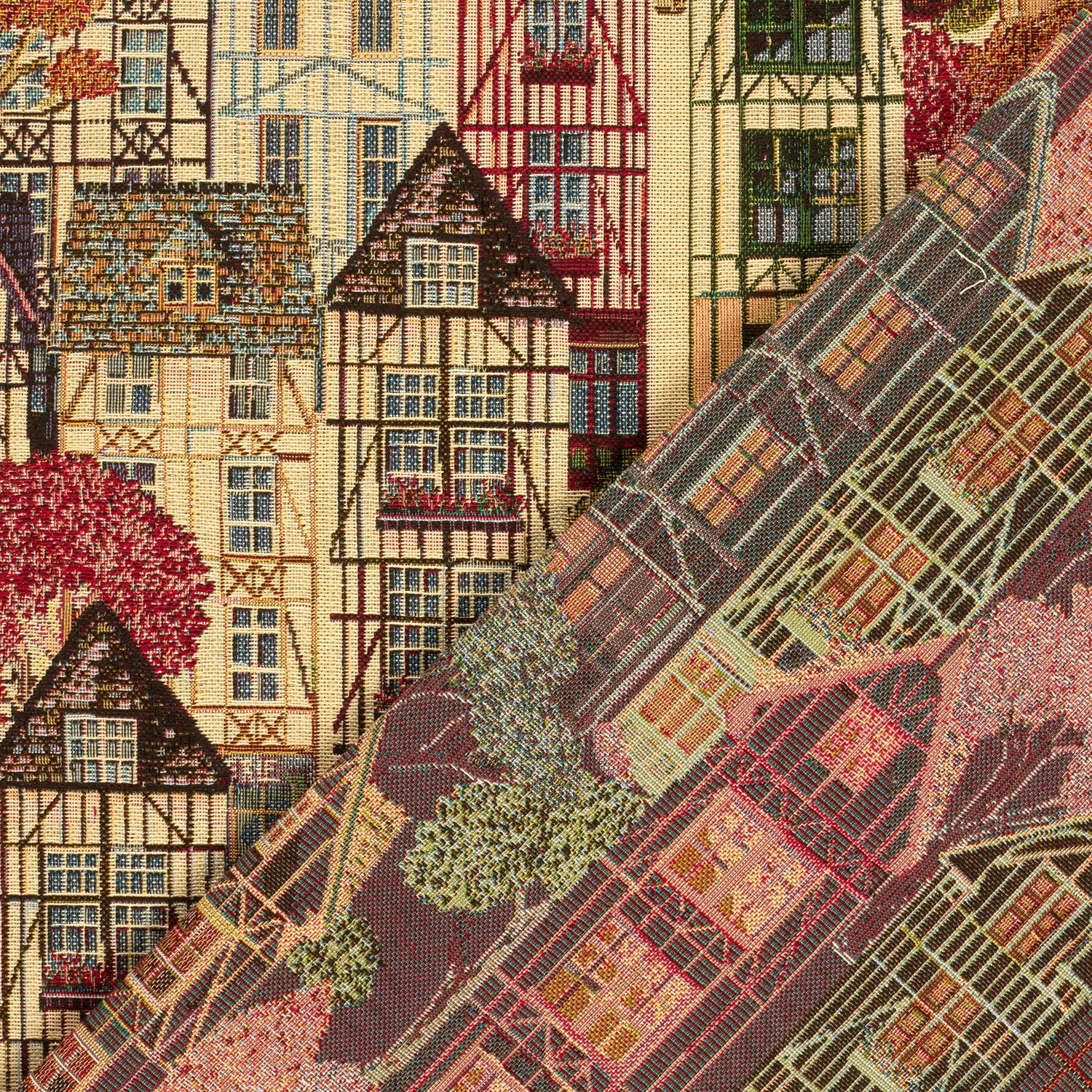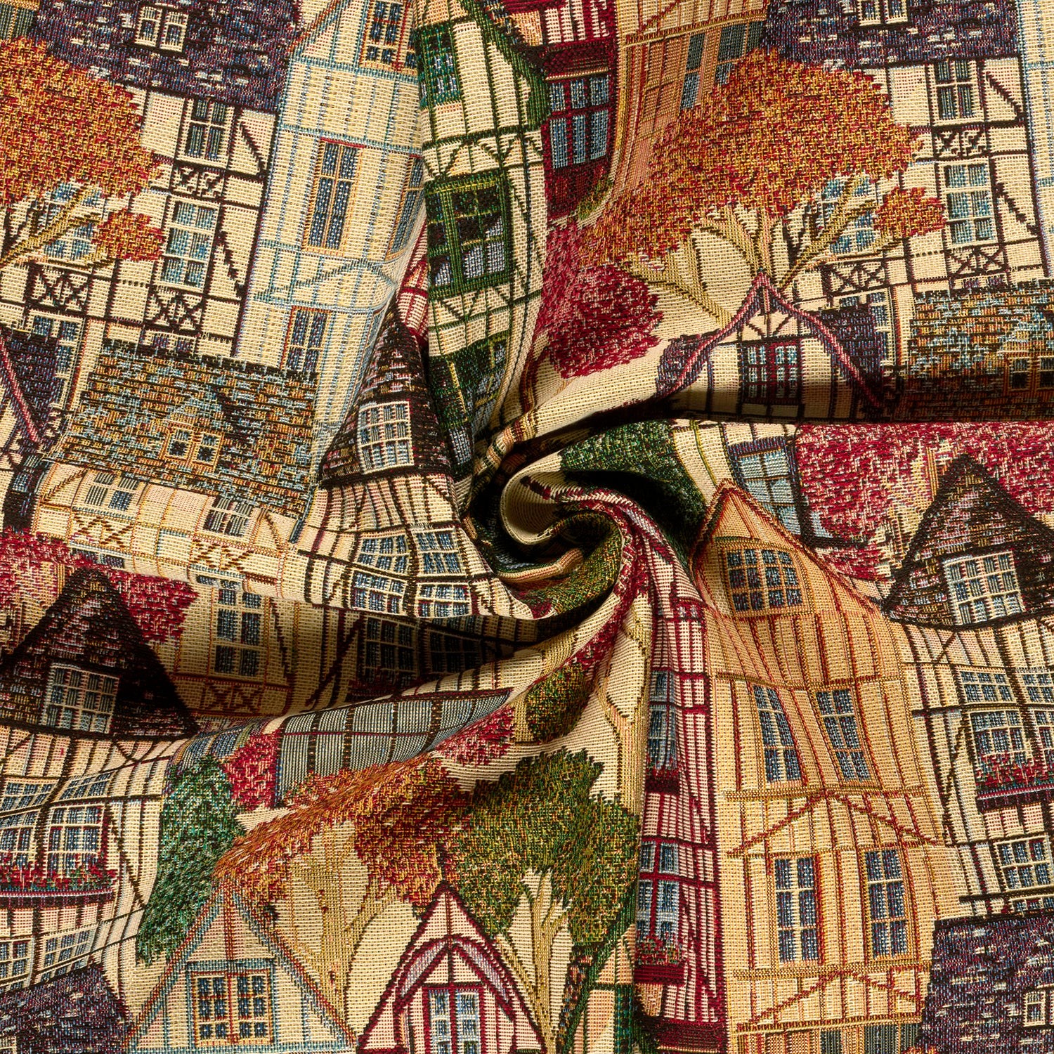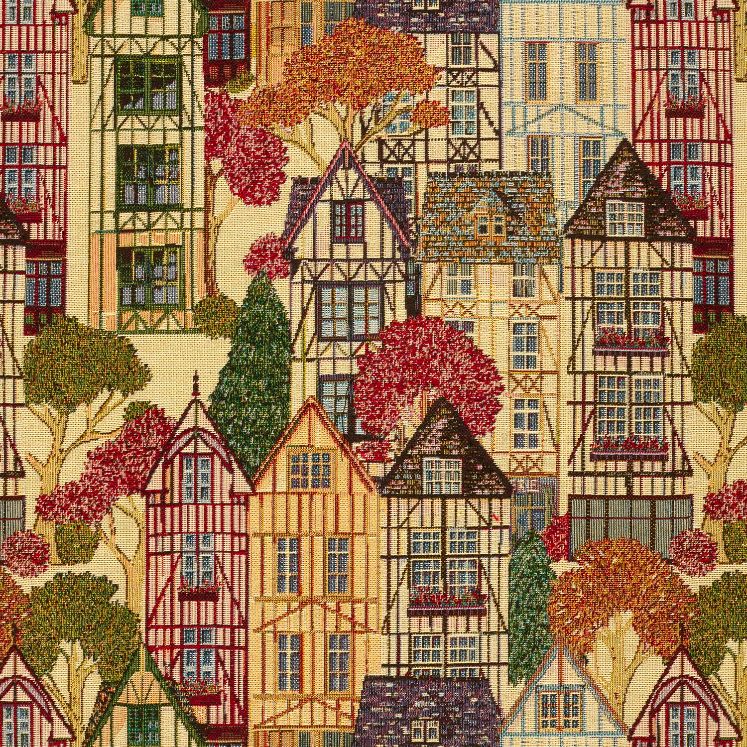 Dekostoff, Webware, eine robuste und stabile Ware , buntes Häuser, Stadtmotiv