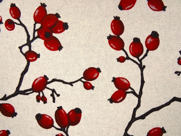 bedruckter Dekostoff, Canvas, Webware, Hagebutten