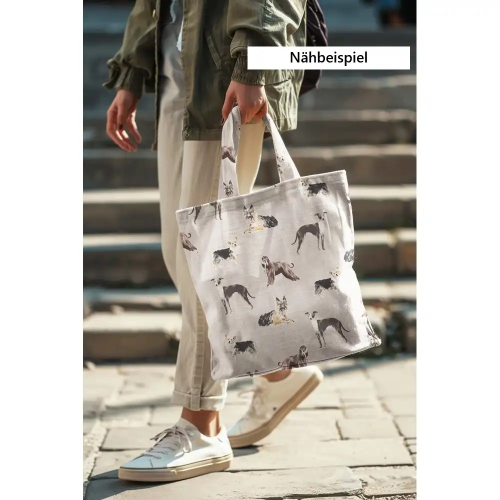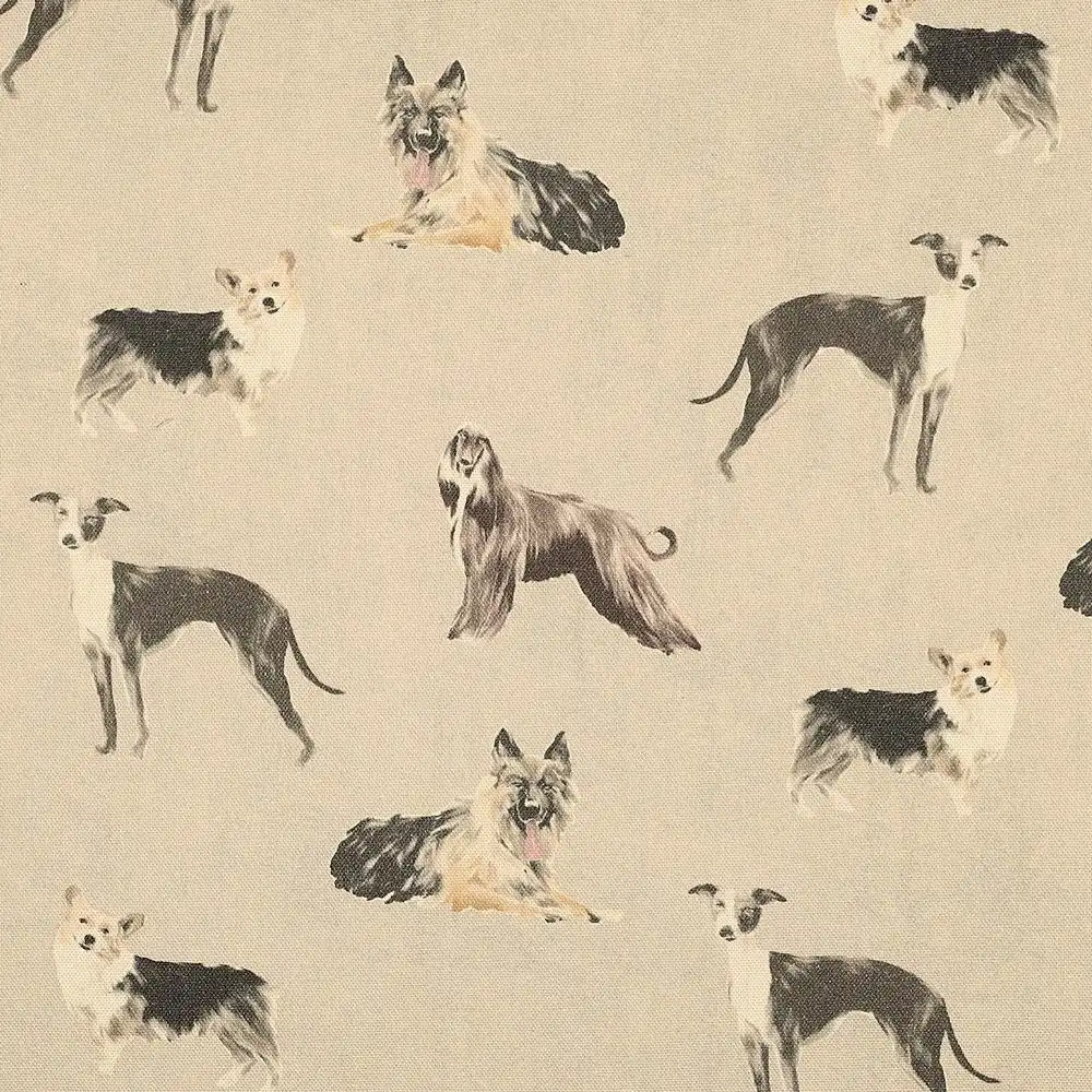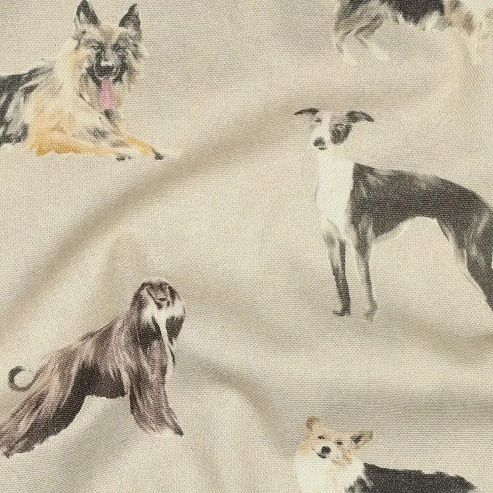 bedruckter Dekostoff, Webware, Leinenoptik, unterschiedliche Hunderassen, Digitaldruck