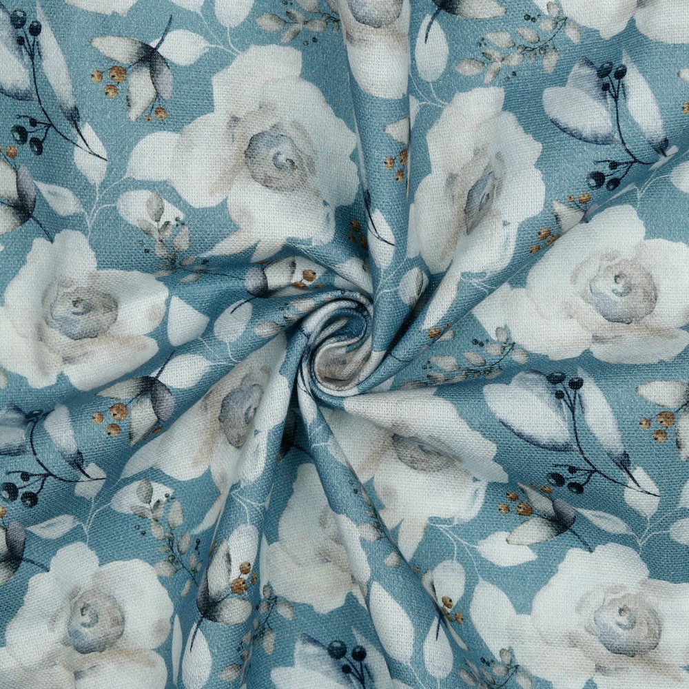 Produktinformationen "Dekostoff , Rosen, dusty bleu"