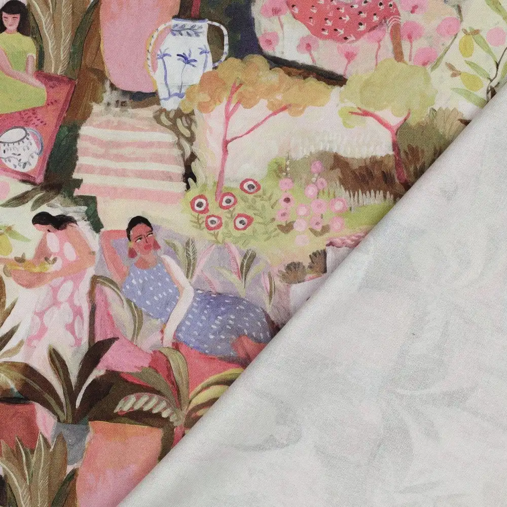 bedruckter Dekostoff, Canvas, Webware, Blütendruck , hochwertiger Digitaldruck, bezauberndes Gartenmotiv, wie ein Gemälde