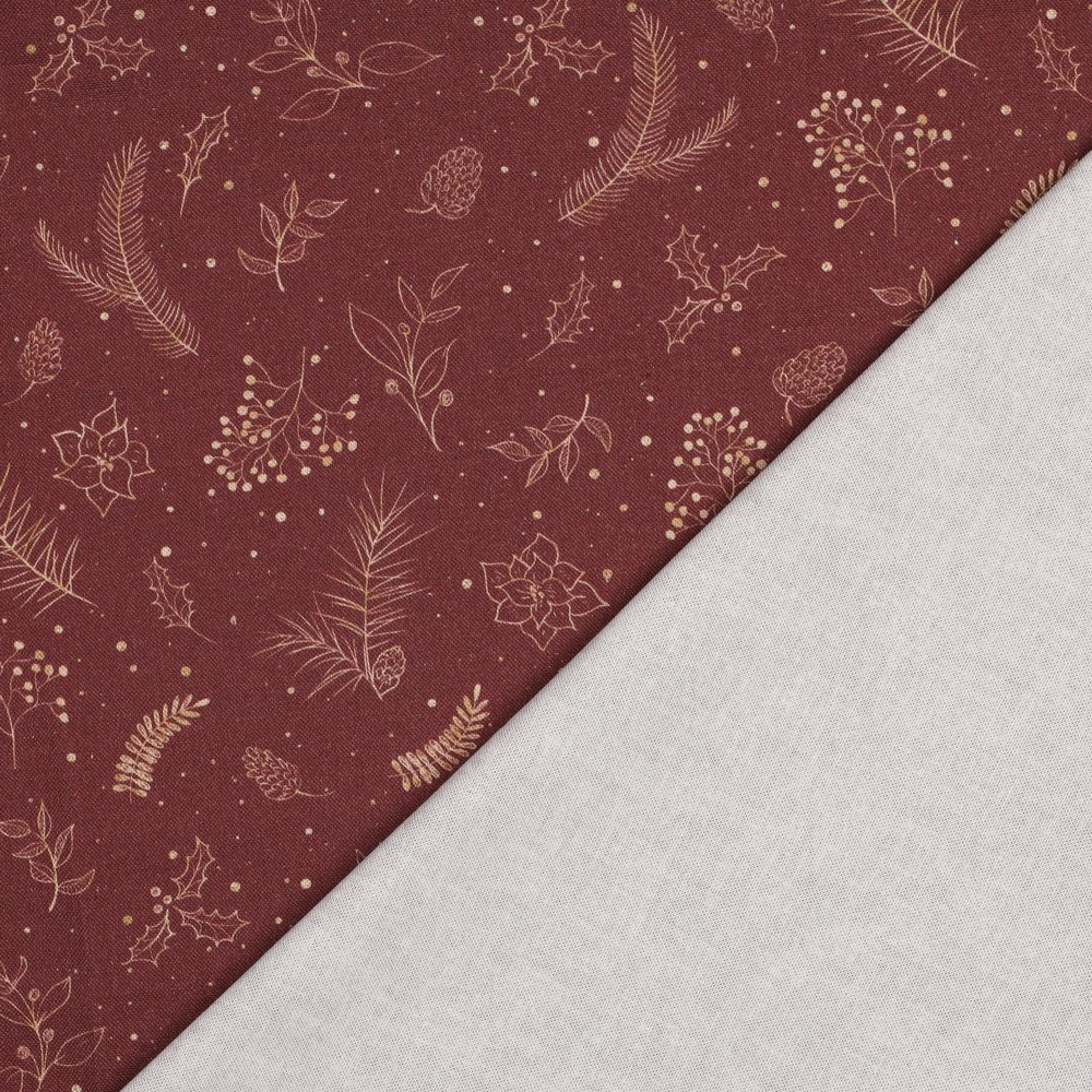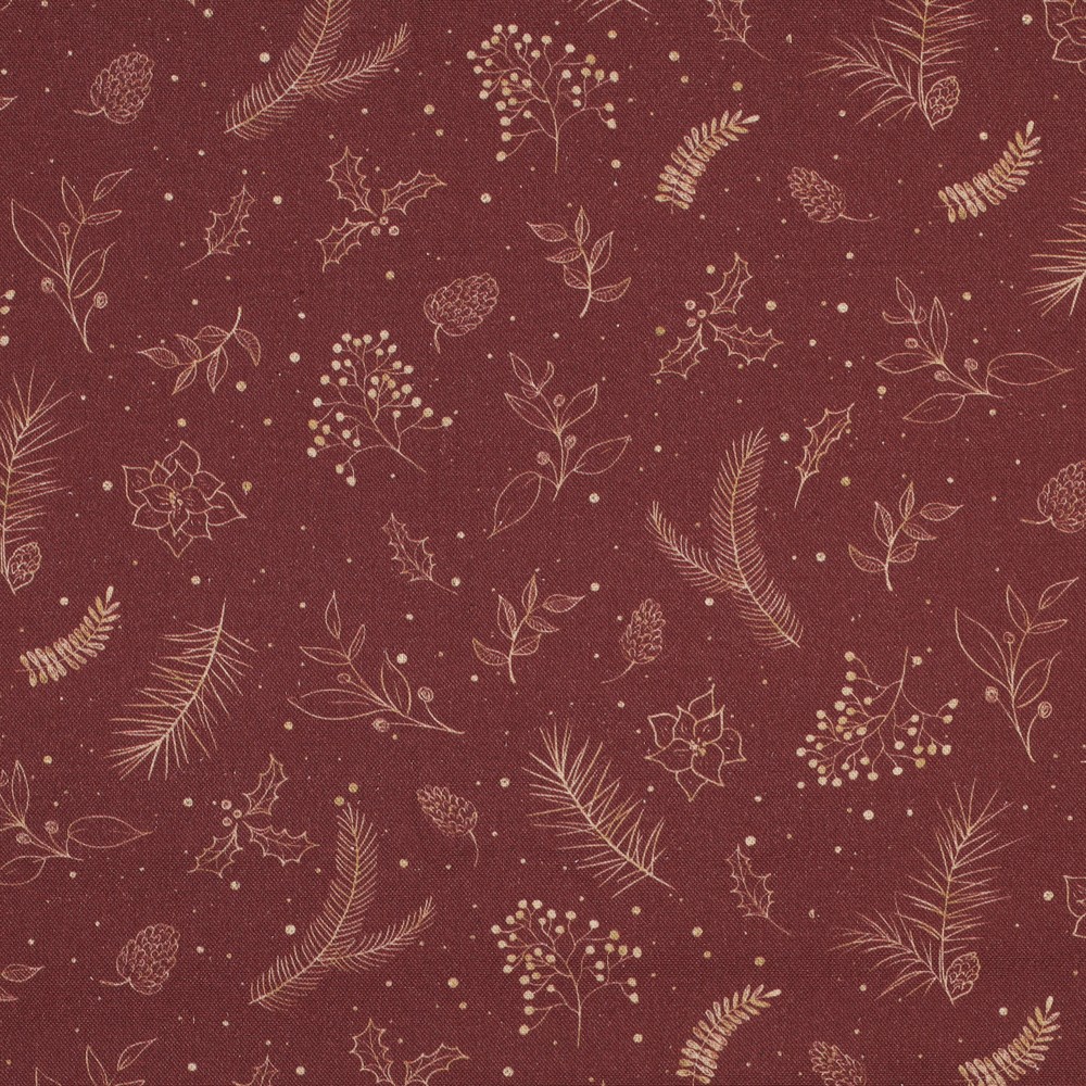 Produktinformationen "Dekostoff Weihnachtszweige, bordeaux"