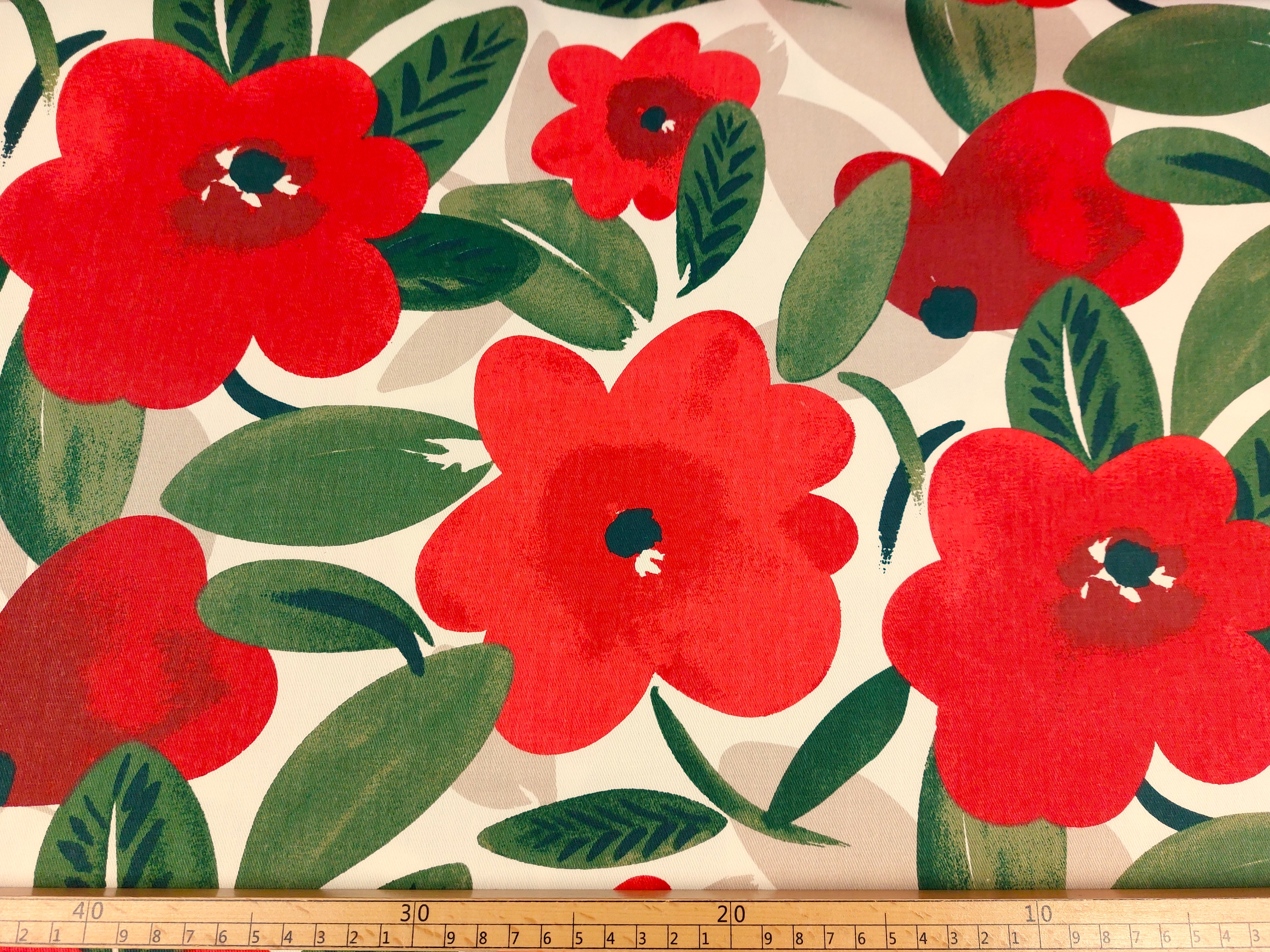 Dekostoff , große rote Blüte