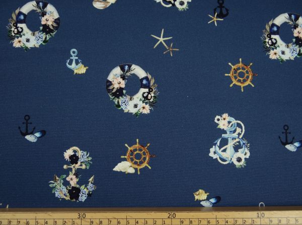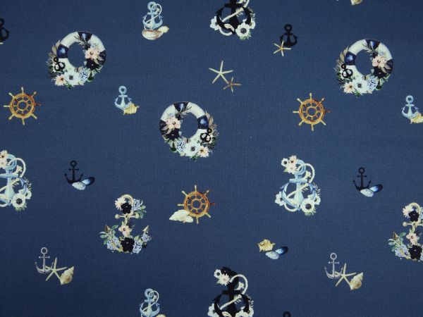 bedruckter Dekostoff, Webware, maritime Motive romantisch verpackt