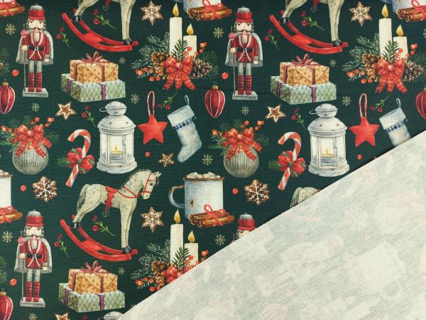 Webware, Canvas mit traditionellen weihnachtlichen Motiven, wie Schaukelpferd, Zuckerstange und Nussknacker