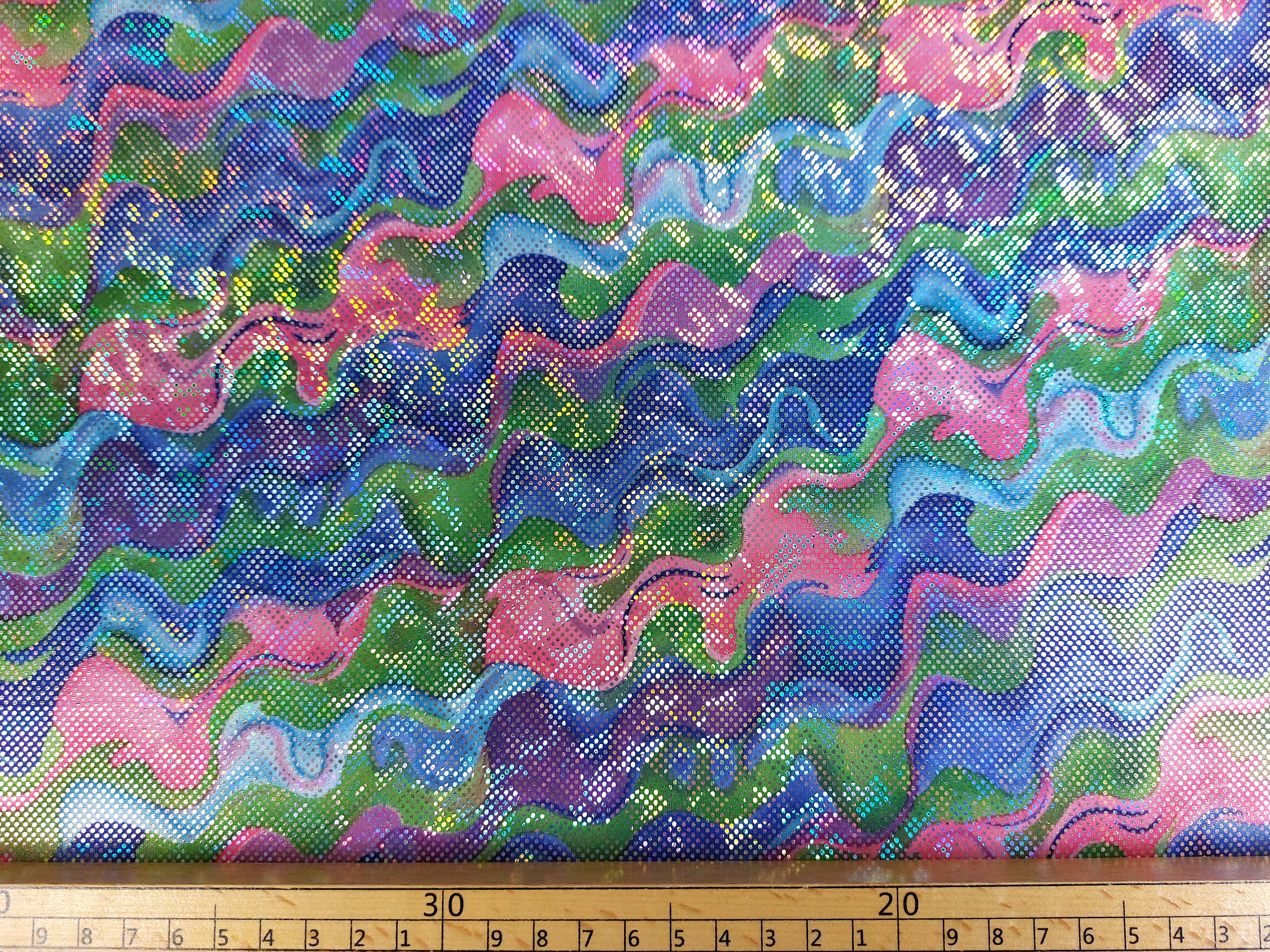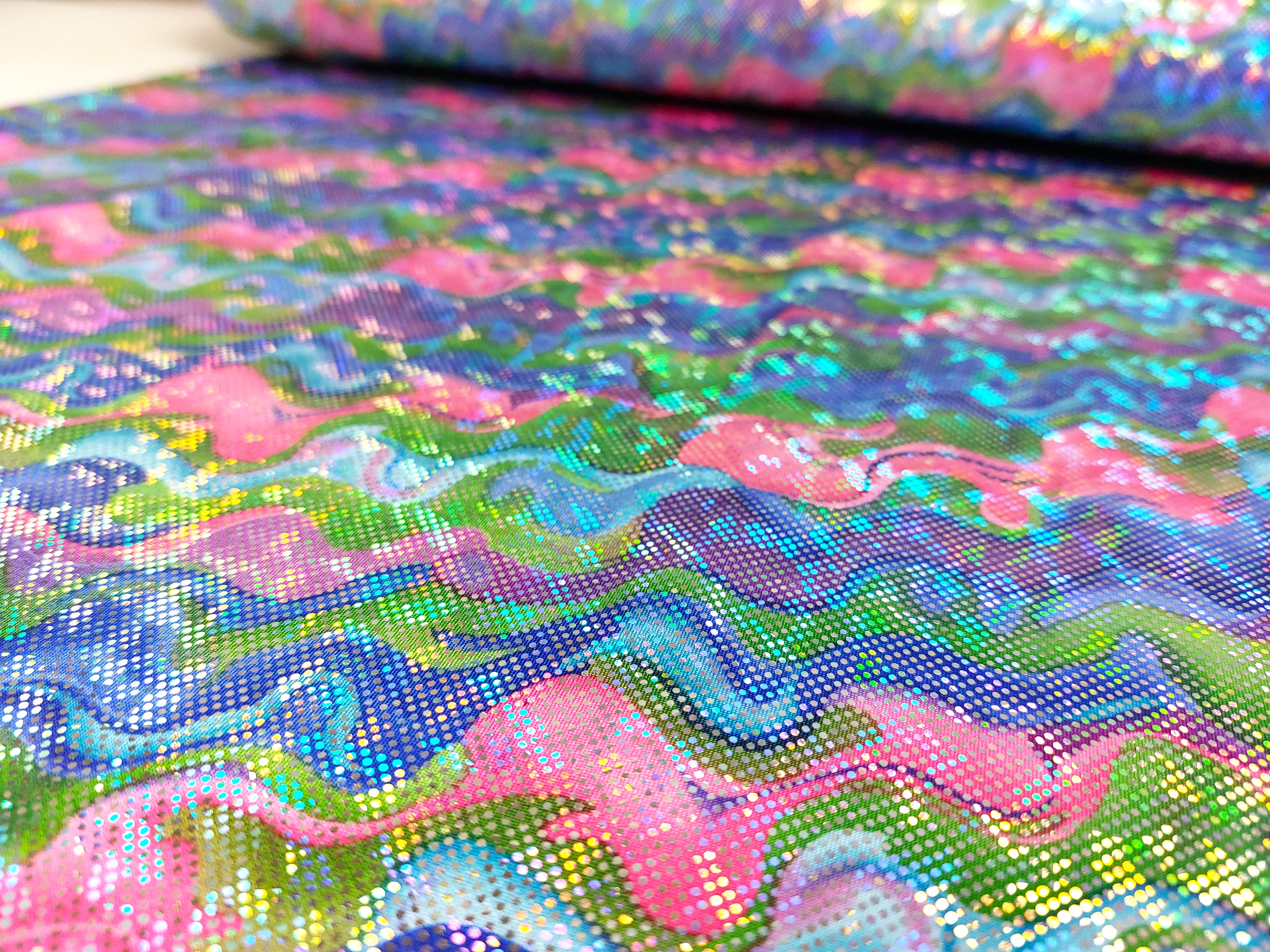 - sehr elastischer feiner Jersey mit Foliendruck, Hologramm Effekt