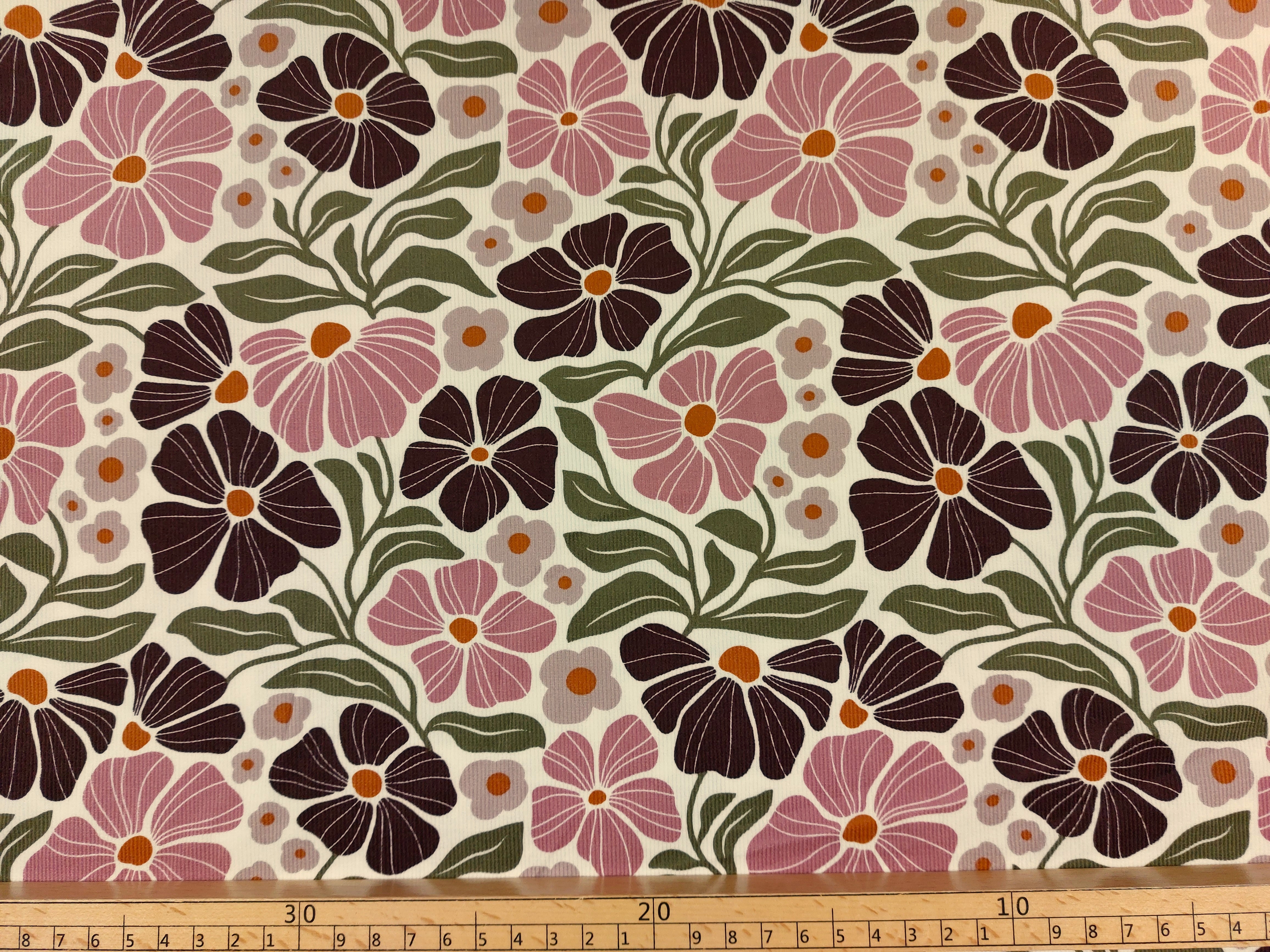 feine Rippe ( 21 W) mit Blumenmuster , sehr weiche Baumwollware