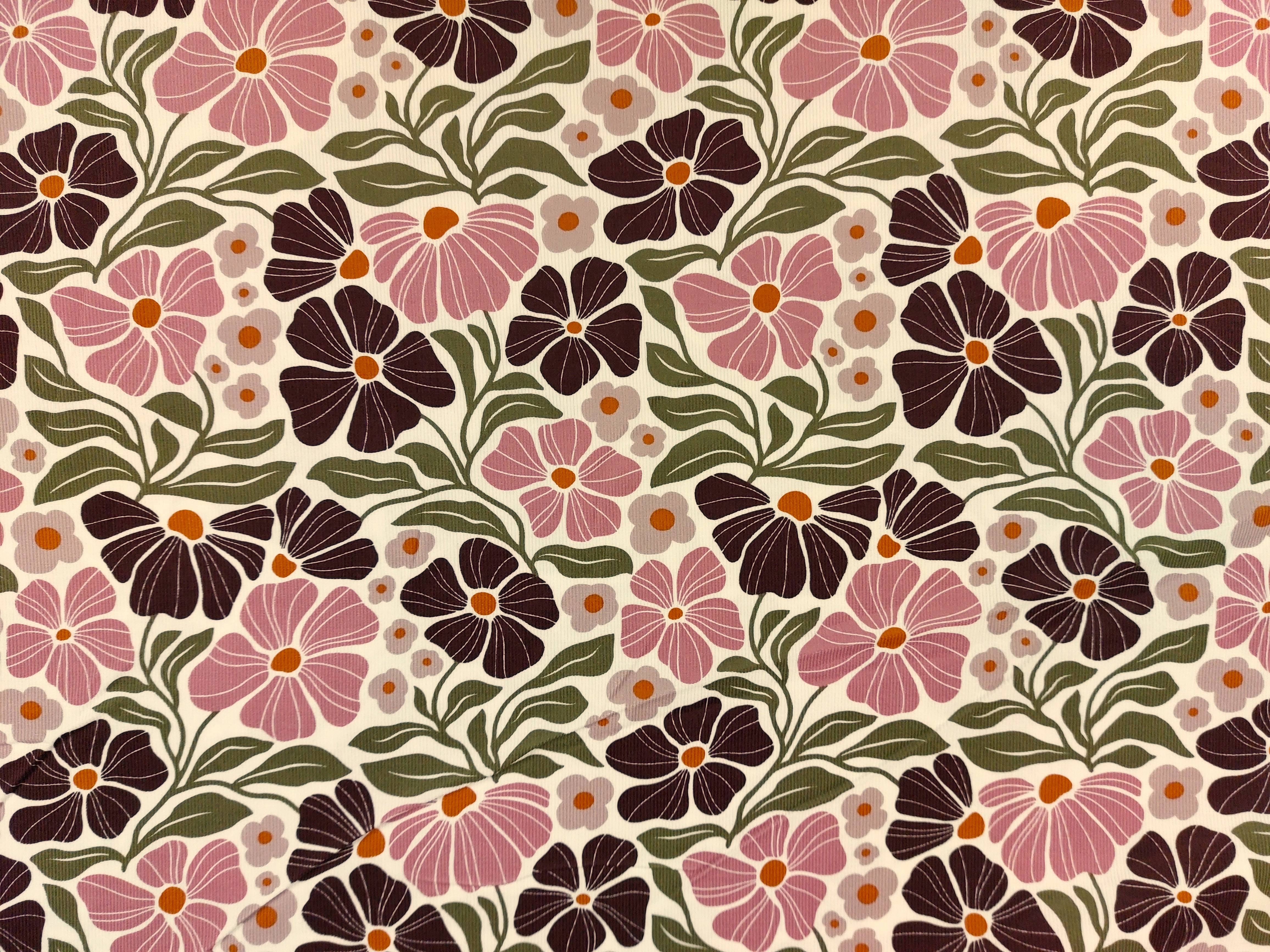 Produktinformationen "Feincord Blumen ecru/ mauve"