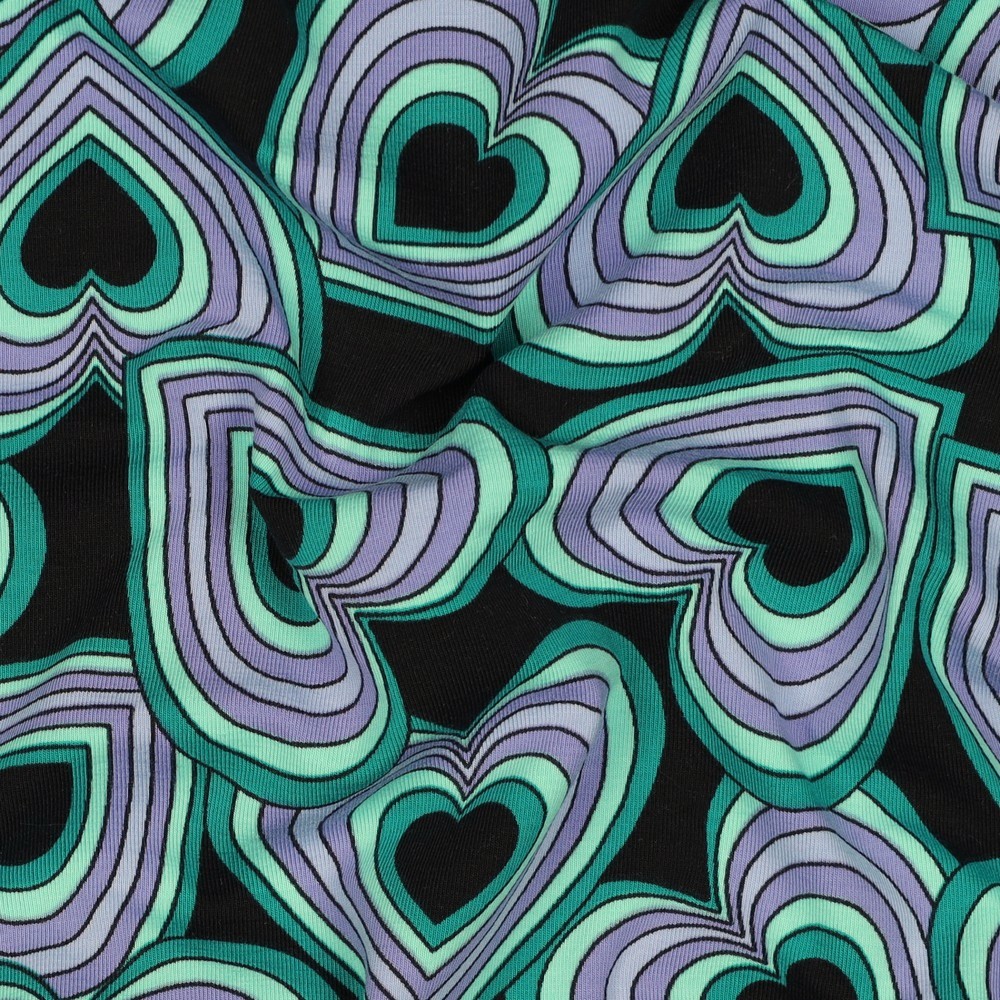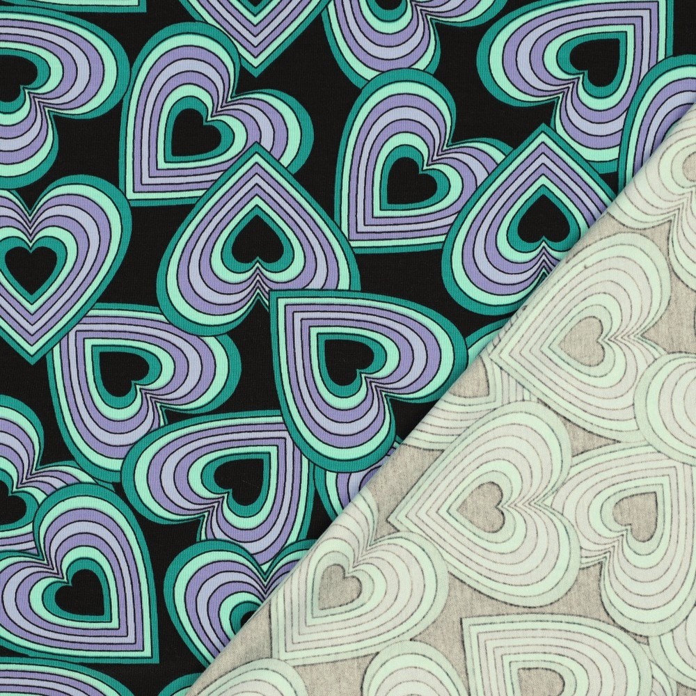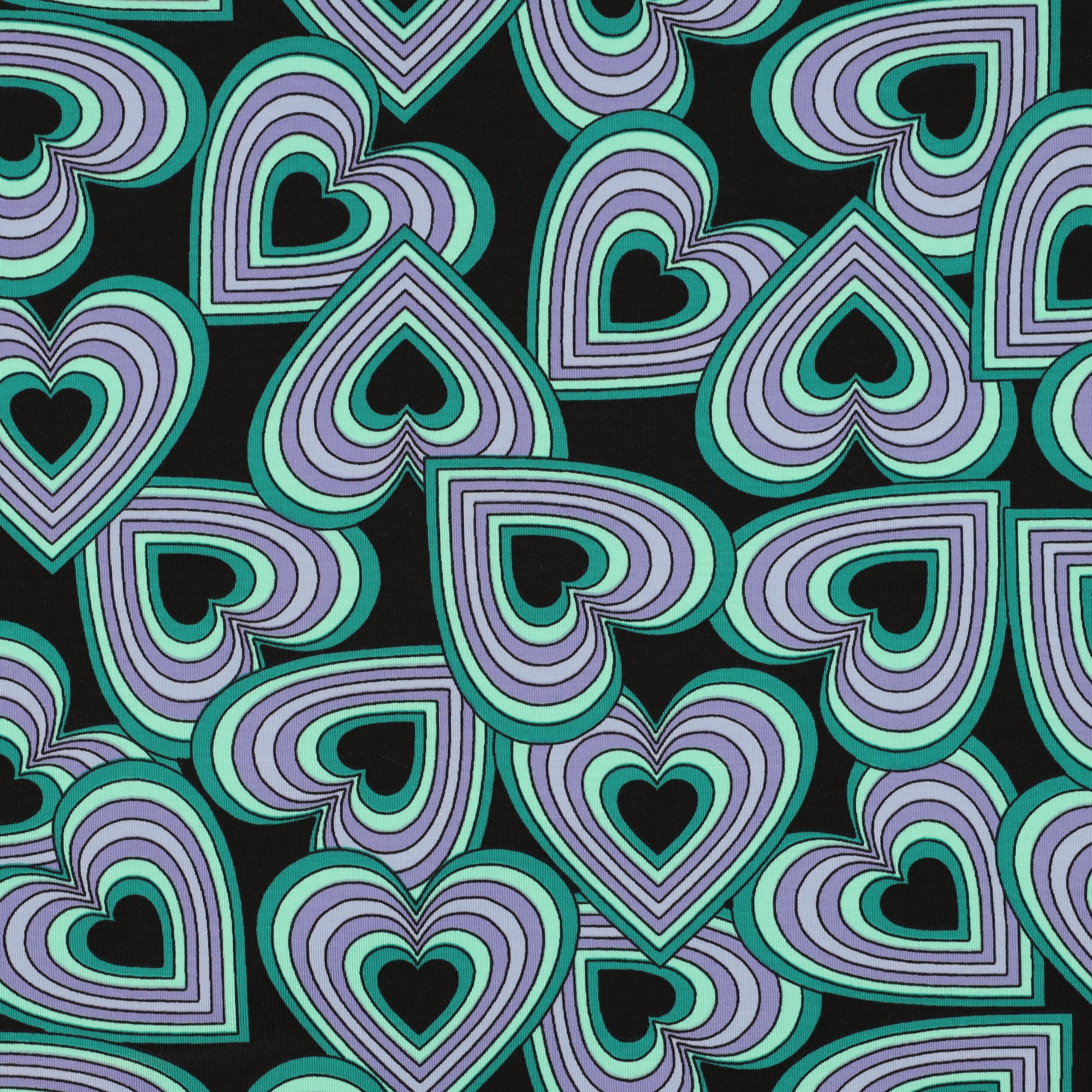 Produktinformationen "Jersey Baumwolle, Herzmuster, schwarz / grün"