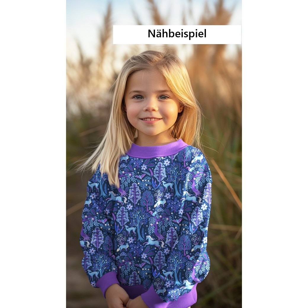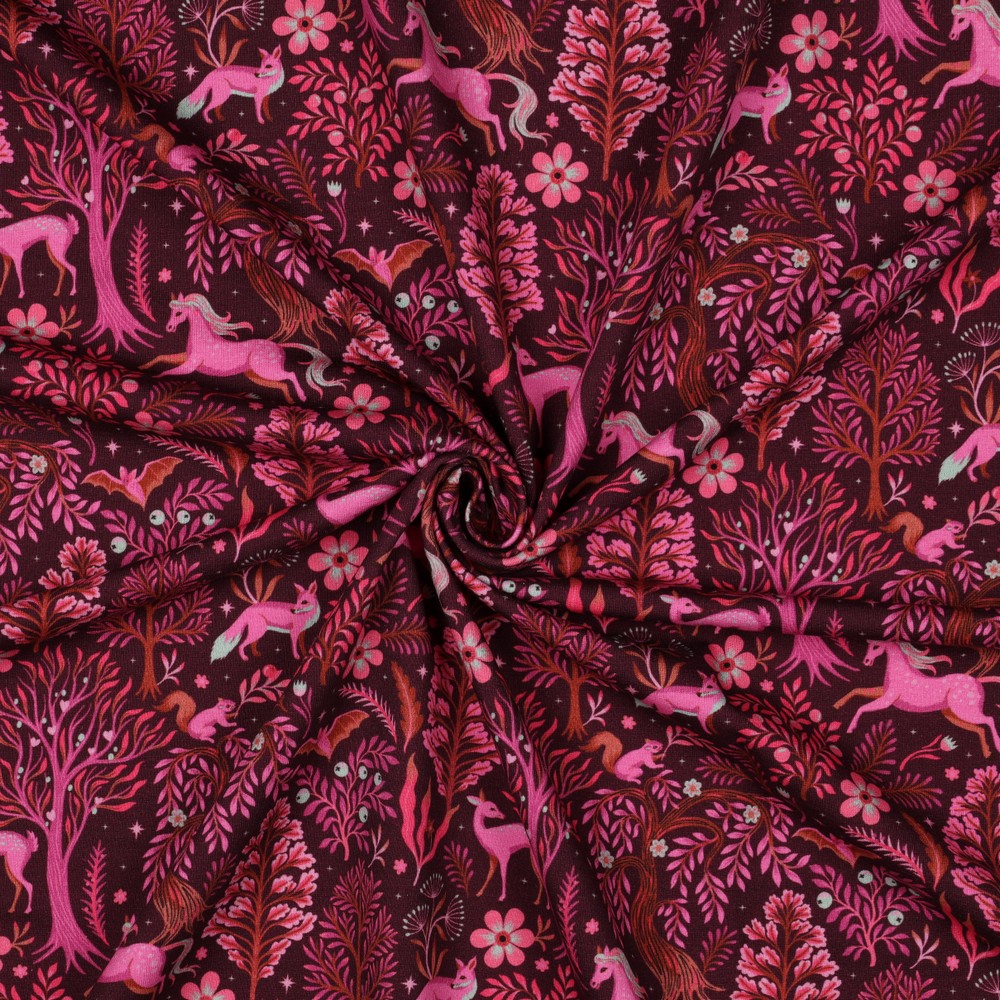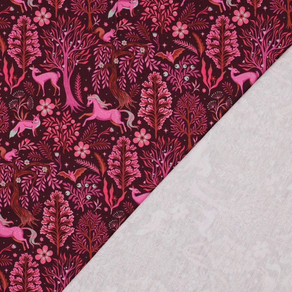 Produktinformationen "Jersey , French Terry ,Einhorn im Märchenwald, pink / rot"