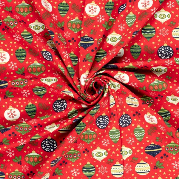 Produktinformationen "Jersey , French Terry , Weinachtenskugeln , rot"