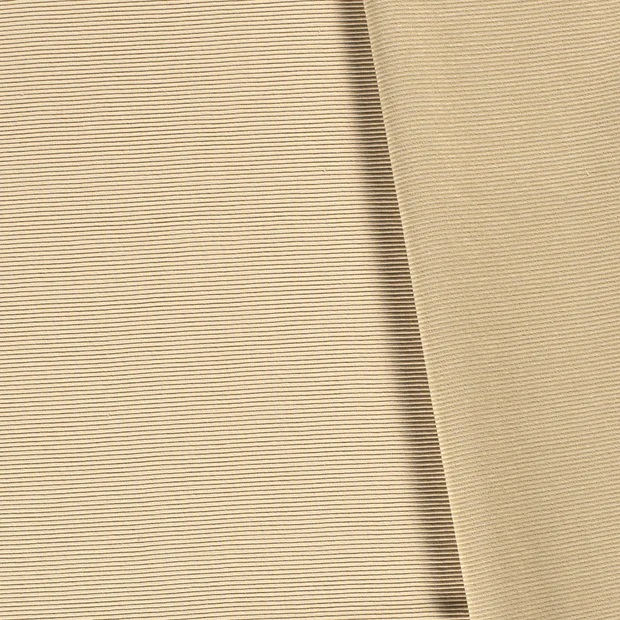 Es ist ein elastischer Jersey, der sich durch seine deutlich sichtbaren Rippen auszeichnet. Der Stoff ist etwas fester, als ein normaler Jersey und deshalb für Kleidung mit einer gewissen Stabilität geeignet.