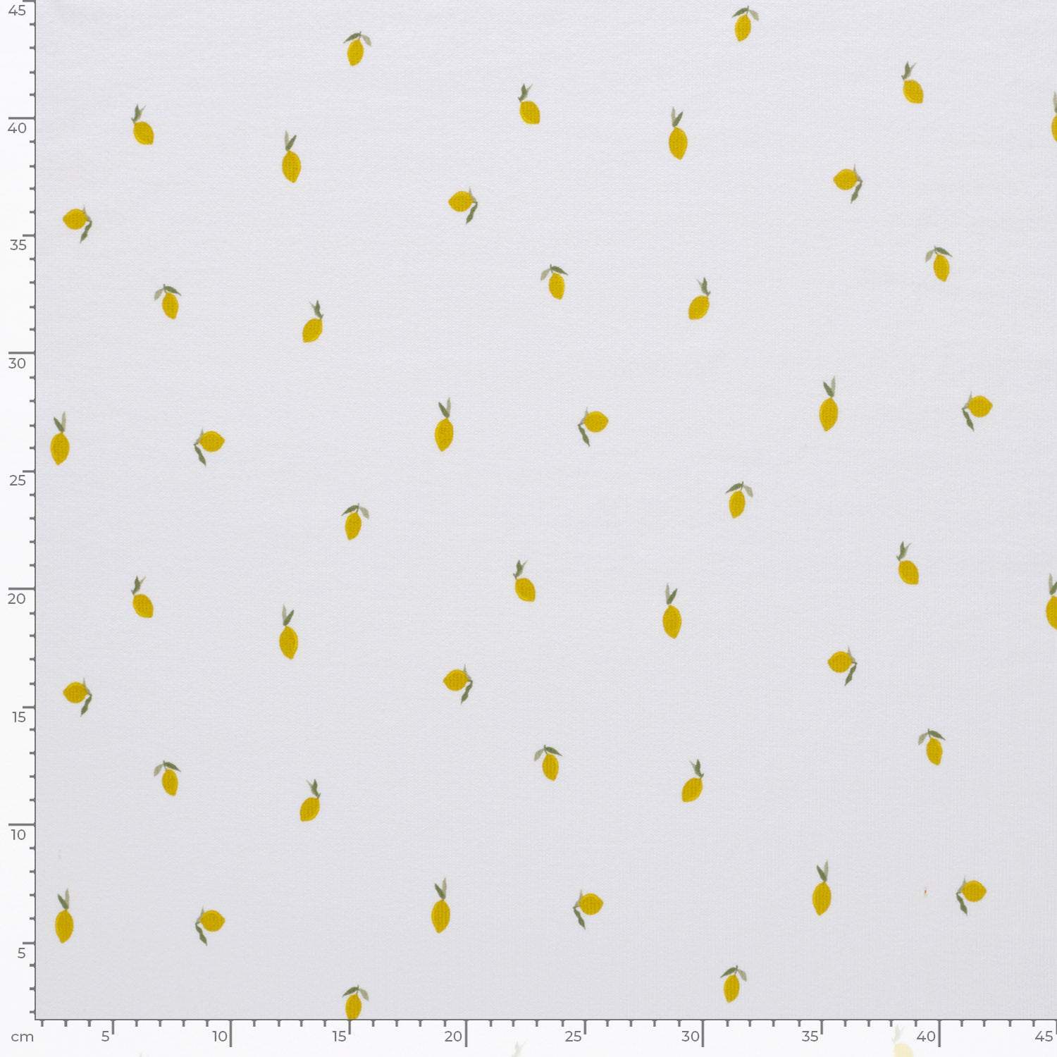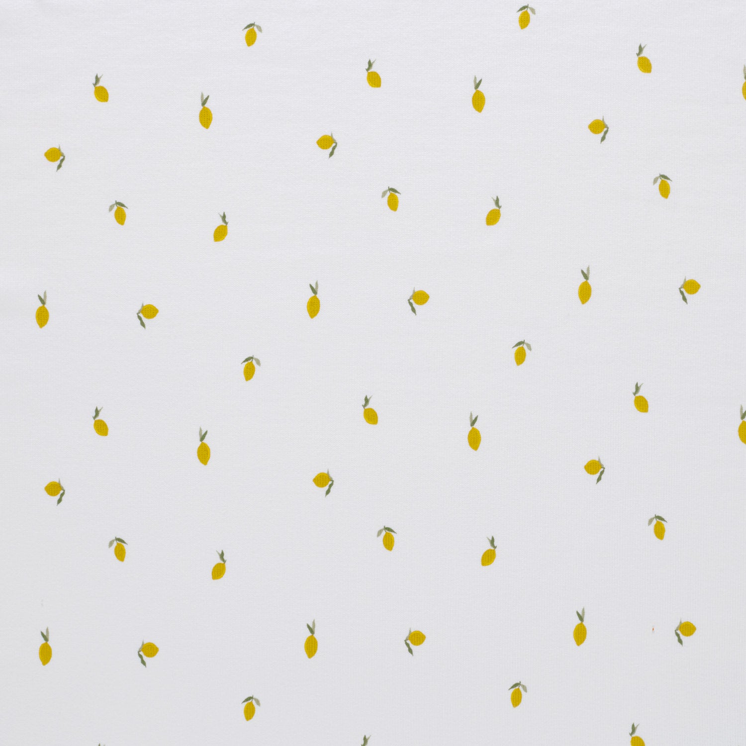 Es ist ein elastischer Jersey, der sich durch seine deutlich sichtbaren Rippen auszeichnet. Schöner romantischer Druck mit kleinen Früchten