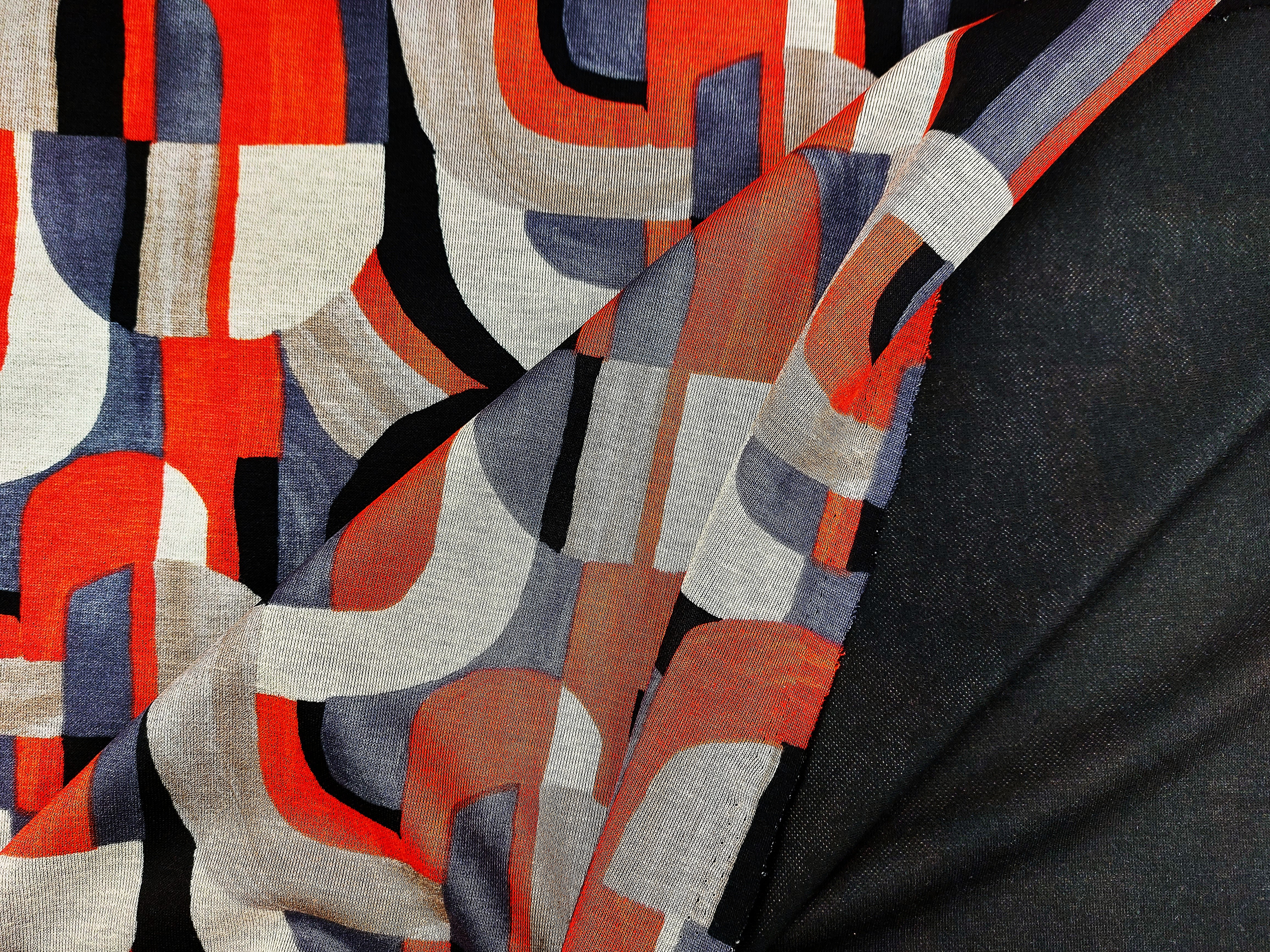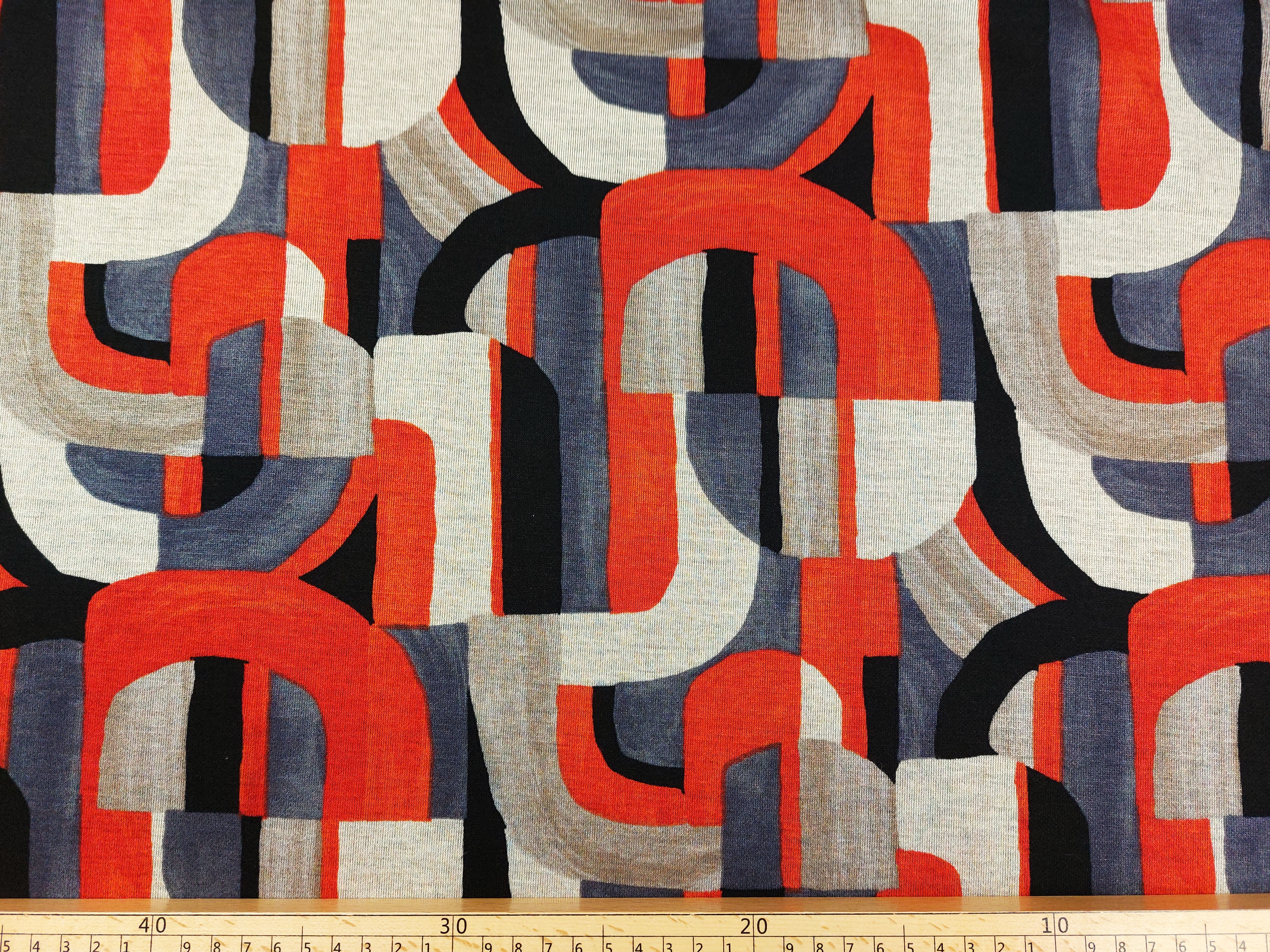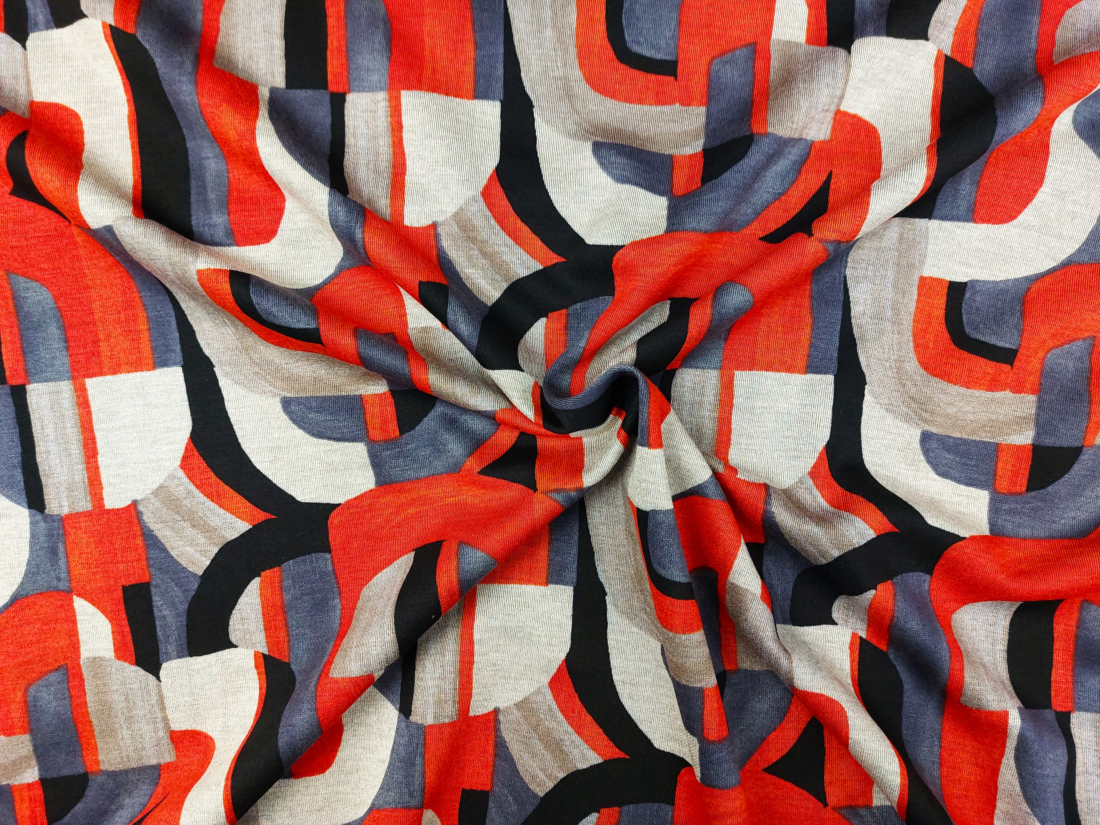 Jersey Romanit gemustert, graphisches Muster grau / rot