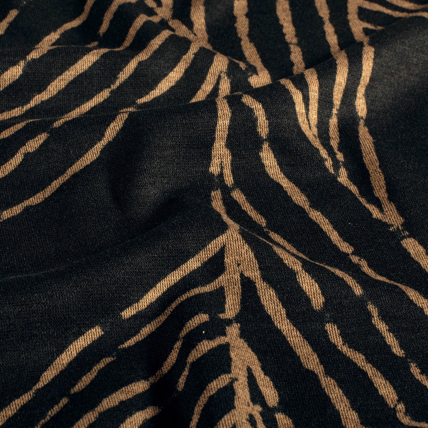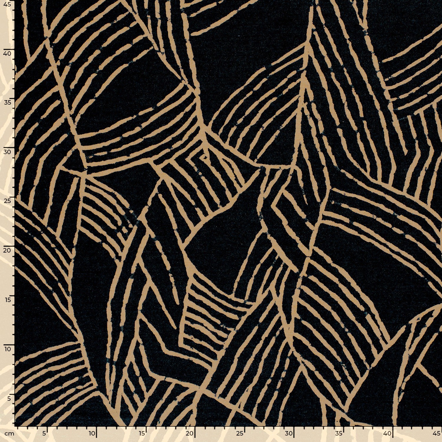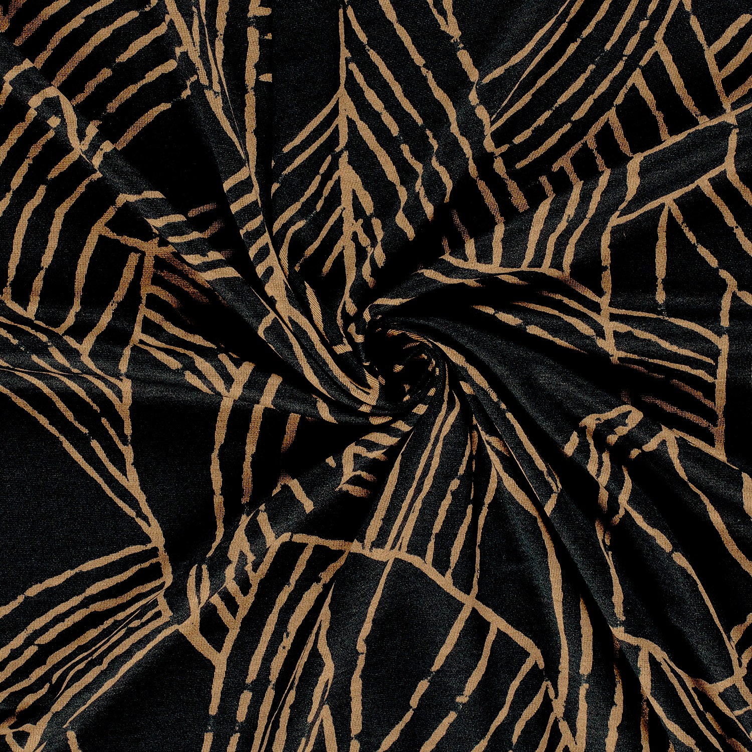 Produktinformationen "Jersey Romanit gemustert große Blätter, schwarz / camel"