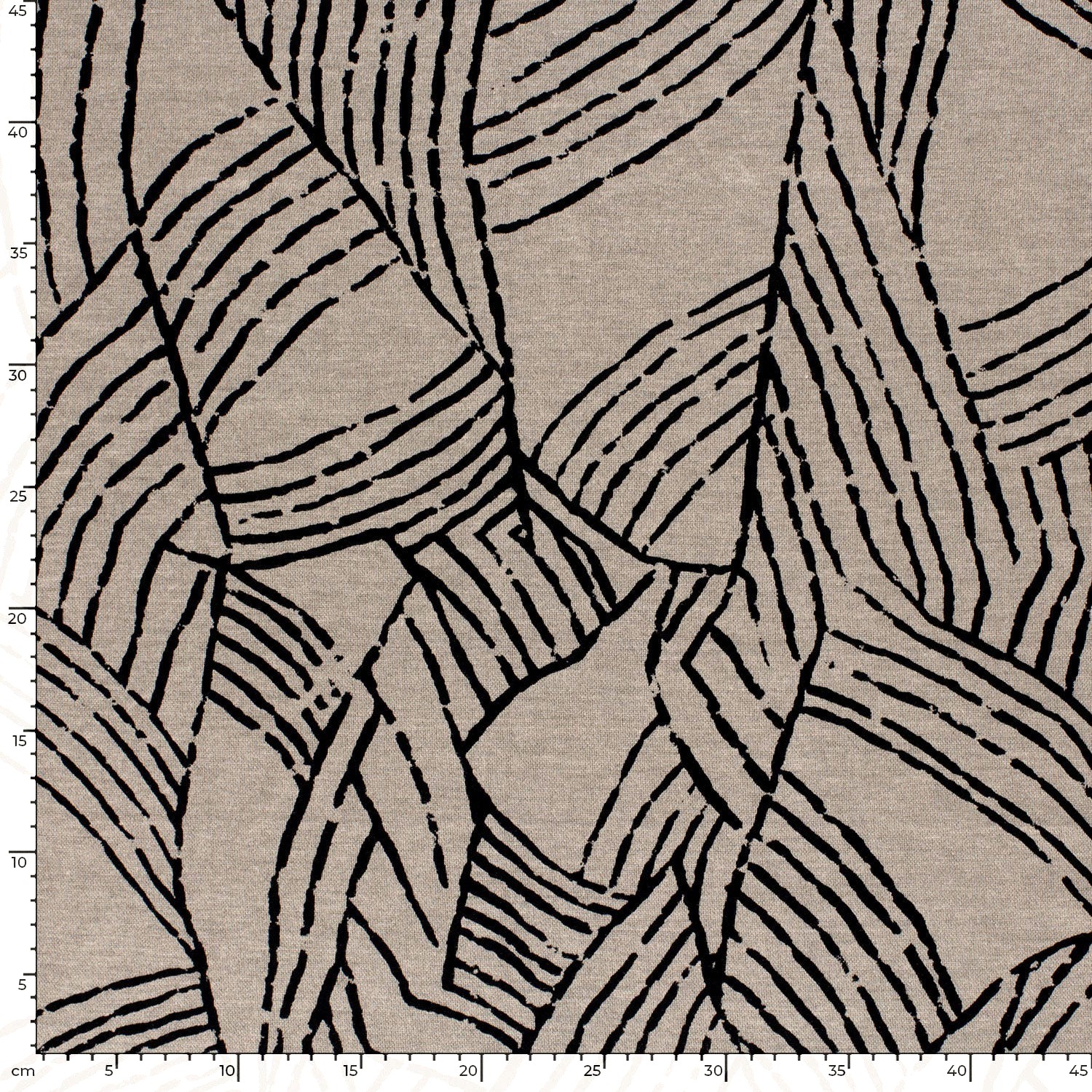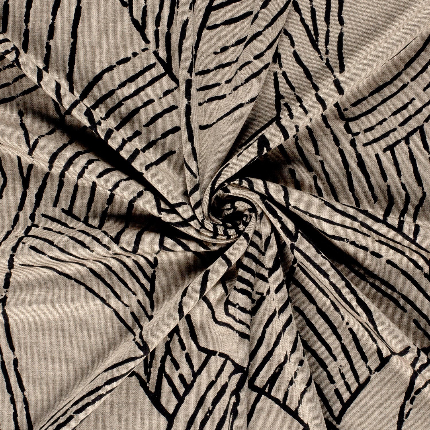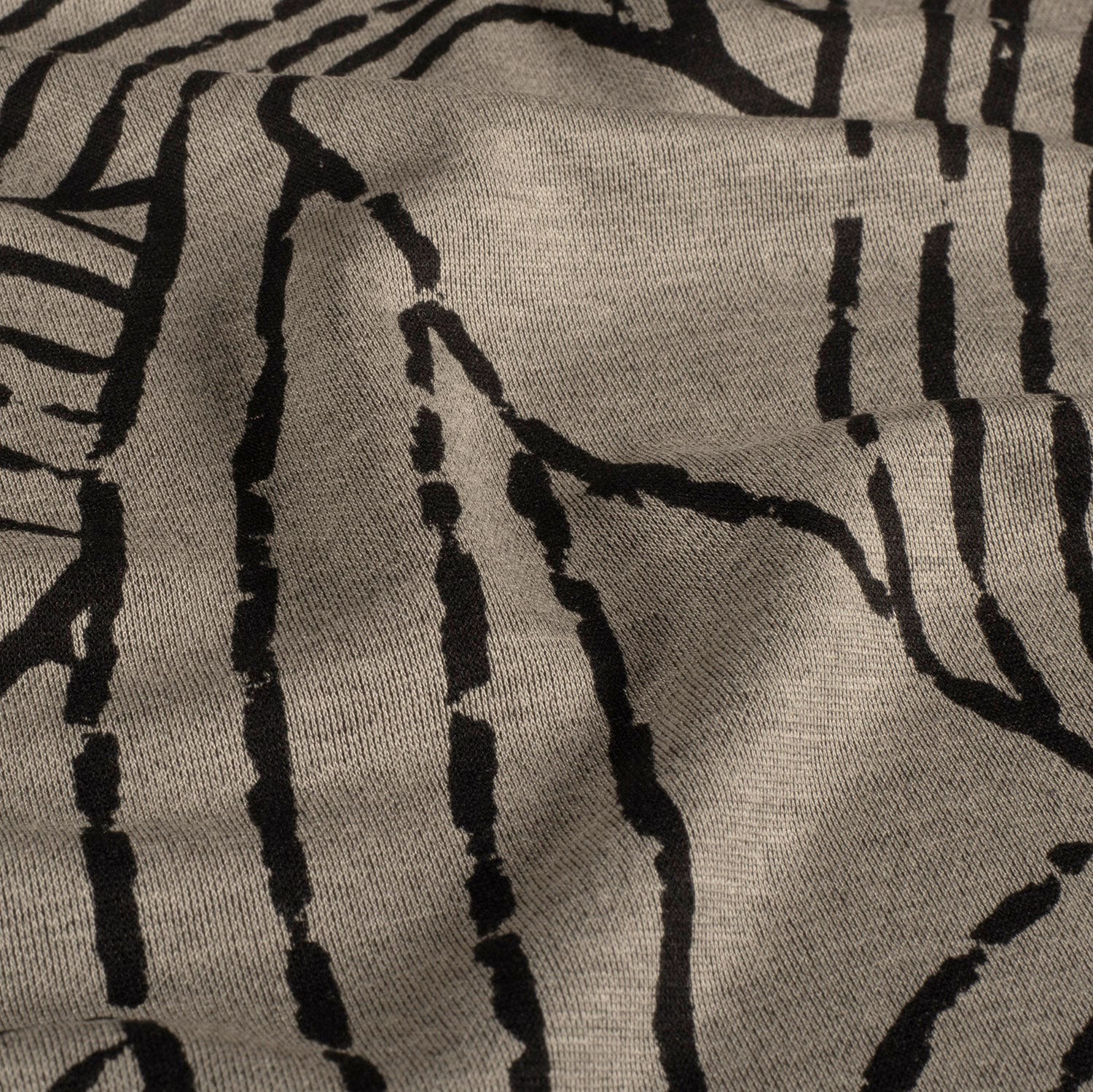 Produktinformationen "Jersey Romanit gemustert große Blätter, silbergrau / schwarz"