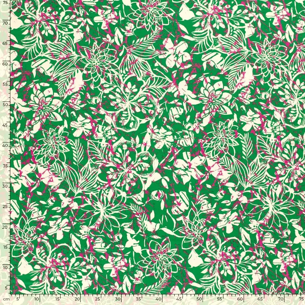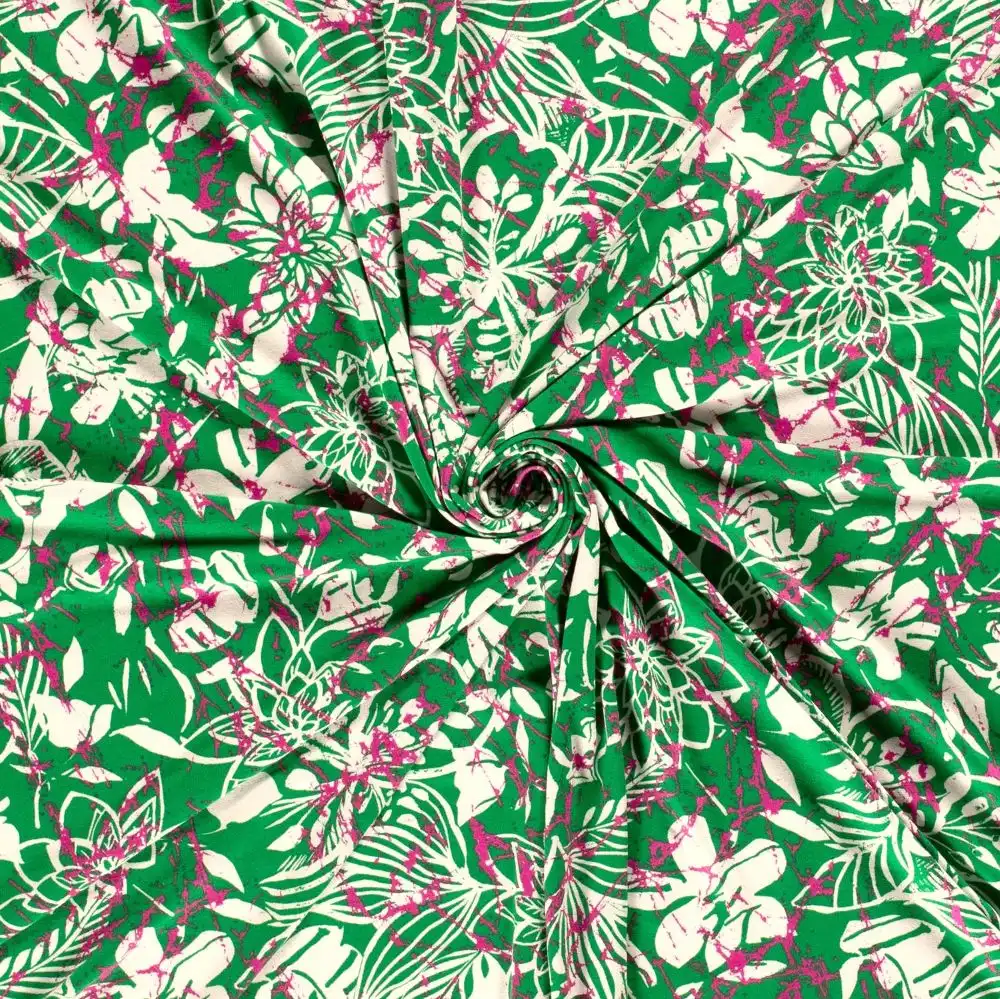 Produktinformationen "Jersey Viskose florales Dessin mit goldenen Akzenten, grün"