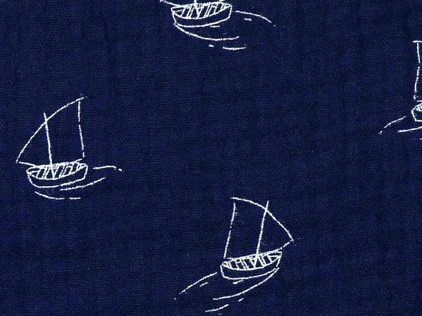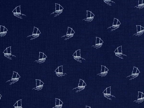 double gauze, locker gewebte Ware, wellige Optik, kleine Segelschiffchen (1,80 cm breit / 2,70 cm hoch)