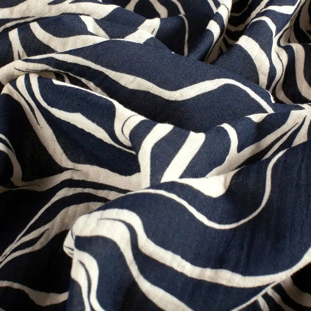 Produktinformationen "Musselin , abstraktes Muster, marine"