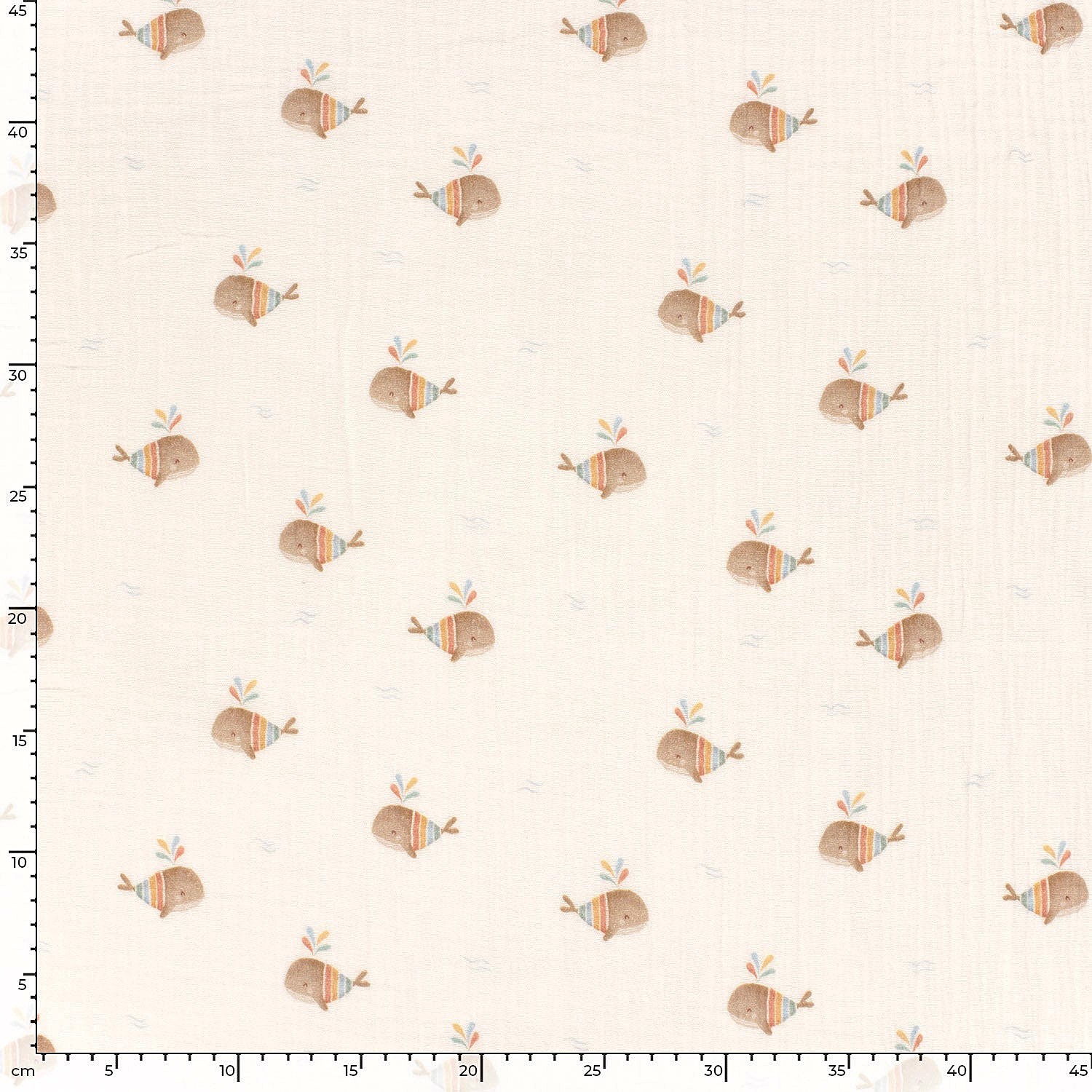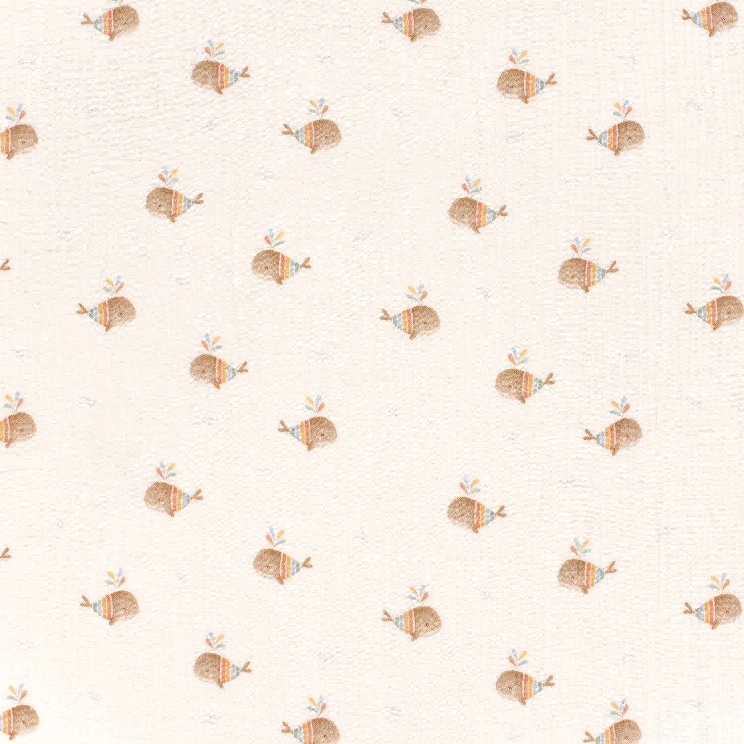 Produktinformationen "Musselin, kleine Wal mit Streifen,offwhite"