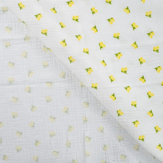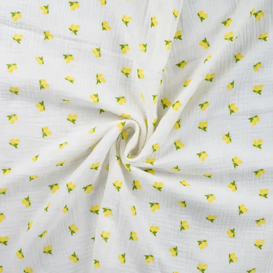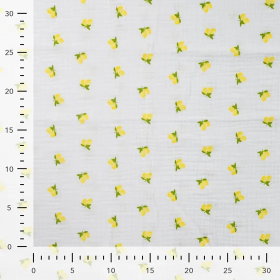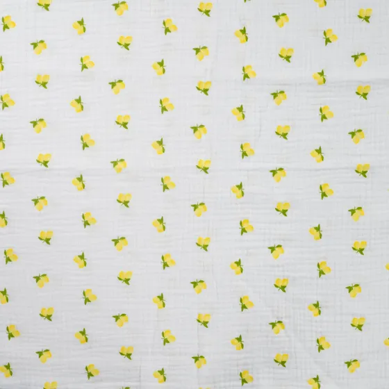 locker gewebte Ware, wellige Optik, frischer Sommerdruck mit kleinen Zitronen