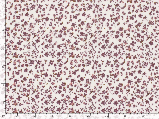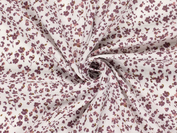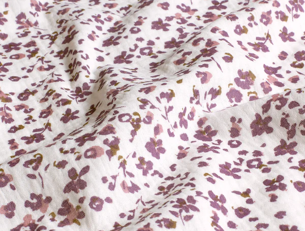 double gauze, locker gewebte Ware, wellige Optik, Streublümchen in lila