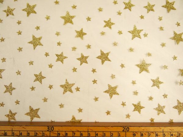 Tüll mit Glitzersternen, gold