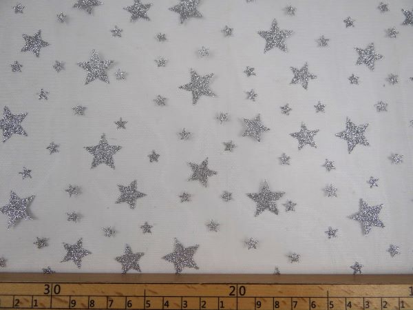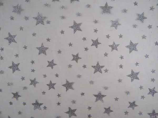 Produktinformationen "Tüll mit Glitzersternen, silber"
