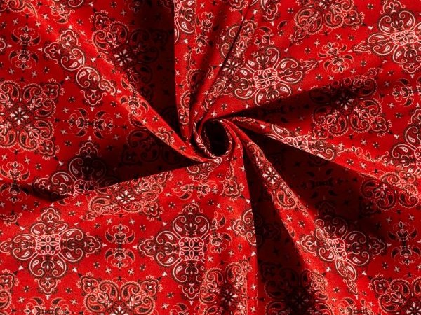 Webware, bedruckt, aus pflegeleichtem Polyester , weiche Ware und angenehmer Warenfall, orientalisches Muster, wie durch ein Kaleidoskop geschaut
