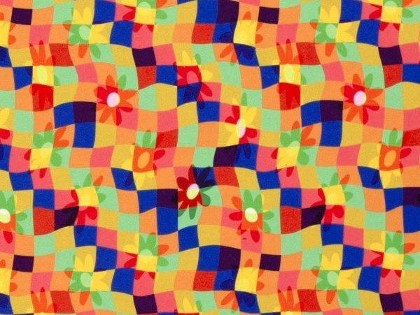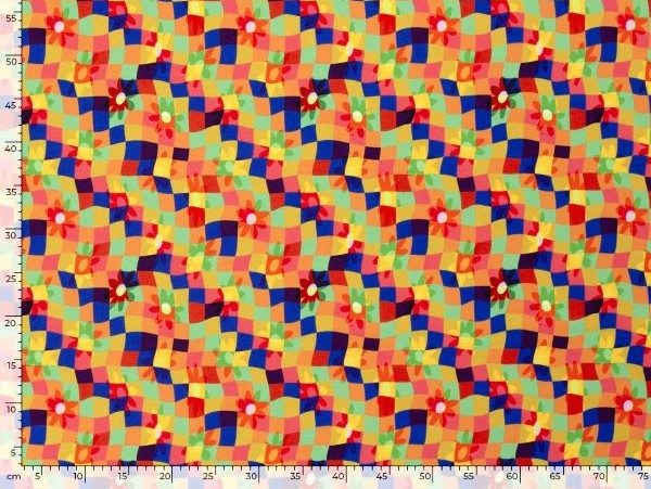 Webware, bedruckt, aus pflegeleichtem Polyester , weiche Ware und angenehmer Warenfall, Vierecke in Wellenoptik mit Blümchen