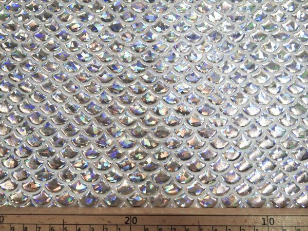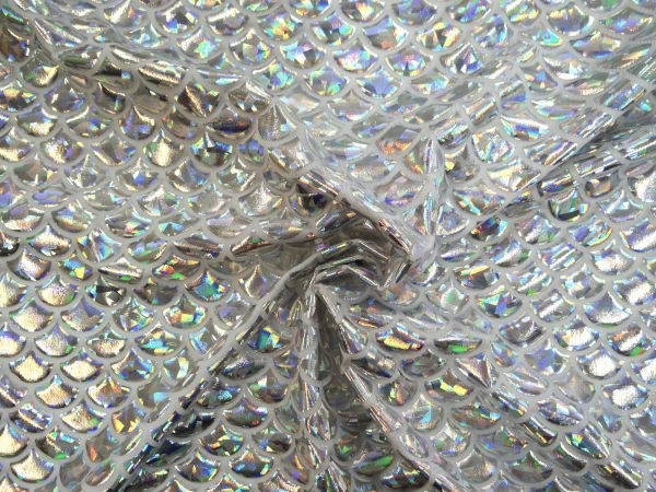 elastischer Wirkstoff mit Foliendruck in Fischschuppenoptik mit Hologrammoptik